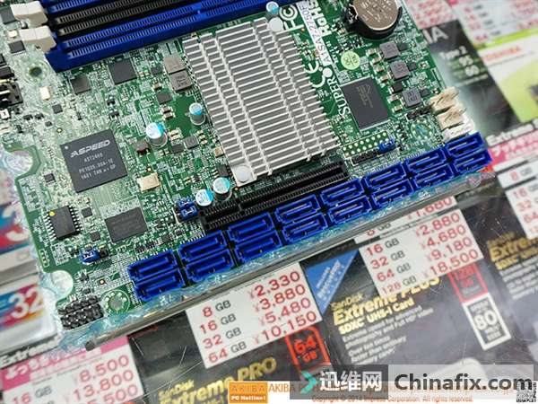 现如今的高端主板早已不满足于芯片组提供的几个原生SATA接口,一般都会通过第三方芯片桥接至少两个SATA 6Gbps接口,最多的甚至能提供6个以上,让主板的SATA接口达到12个。怎么样,这够多了吧?但这相比服务器主板来说就是小巫见大巫了。 日前,超微推出了一款型号为A1SA7-2750F的主板,它整合了Atom C2750低功耗八核处理器,主频2.4-2.6GHz,提供八条DDR3内存插槽,最大支持64GB ECC内存。扩展接口则是一条PCI-E x4插槽,并向下兼容PCI-E x2/x1设备。 该主板最大特色就是使用了LSI SAS2116SW存储控制器,该控制器提供了16个SATA/SAS 6Gbps接口,再加上处理器自带的一个SATA 6Gbps的话,主板上的SATA接口就高达17个了,当存储服务器来用十分给力。 I/O接口部分,该主板提供了两个USB 2.0接口、两个千兆网络接口、一个IPMI LAN接口以及一个VGA视频输出接口。 该主板目前已经在日本上市,售价66980日元,约合人民币4070元左右。别嫌贵,人家本来就是高大上的服务器产品。
