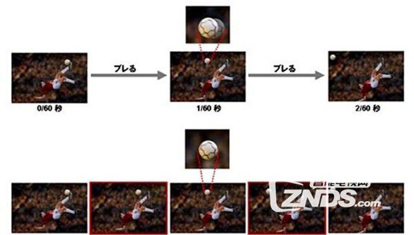 从上图我们可以看出足球在飞行的过程中,我们会看到抖动、重影、模糊的不良现象。