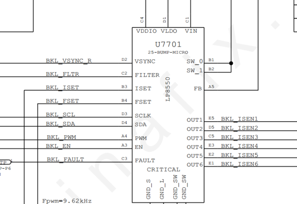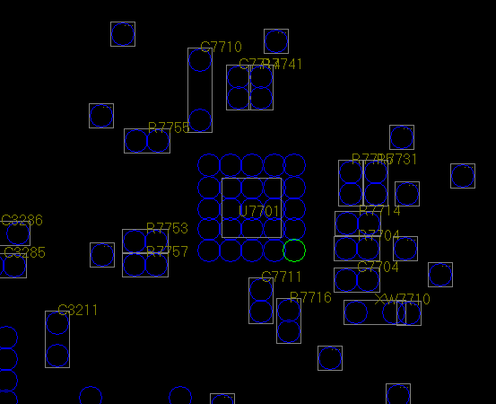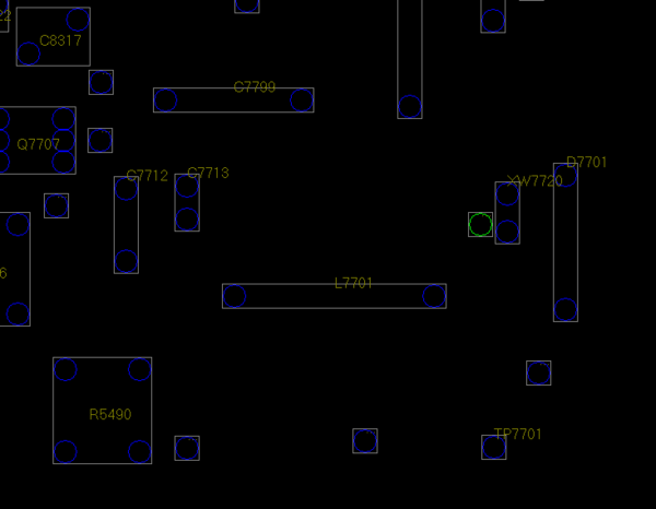 肯定问题在背光,F7700,都烧黑了,处理,换了个,电压.12.6V,还是无背光,开始研究背光控制芯片吧,一顿找啊找,芯片是找到了,,哦...BGA 封装的,都烧掉一边黑了,好吧,告知客户,先换了这芯片再说,要等2天,客户同意,于是就定芯片。。。。2天后芯片到了,刷刷焊上去,测试,还是不亮屏,想到这芯片不好焊,是不是没焊好,拆了,直接再换一片,还是原故障,好吧,转移目标,最后发现,芯片背面,有个小孔,黑的,不用说,过线孔烧了,