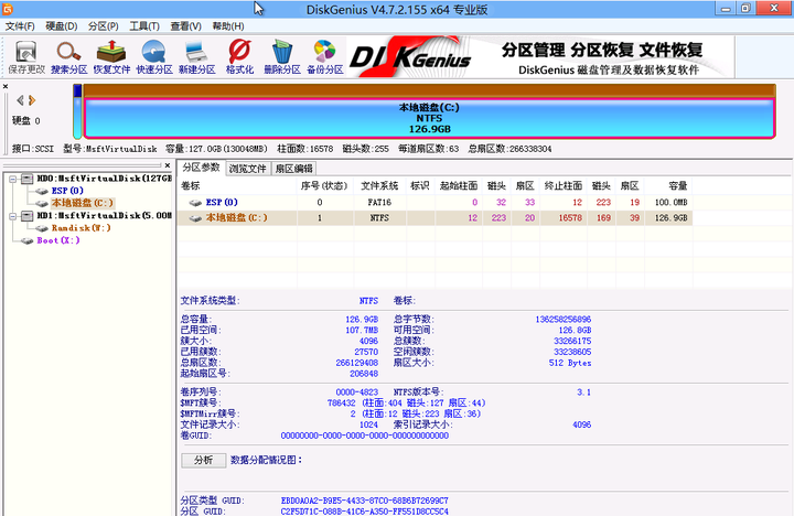 不过新版的分区工具好难用,我从虚拟机里给你们上个图,功能没啥变化,上面表示硬盘的那个柱形图好丑。