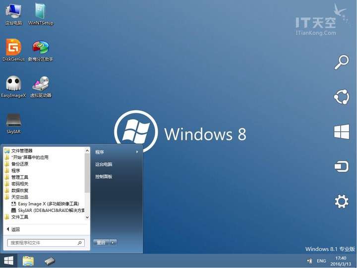 作为国内目前最强悍的系统封装技术论坛、驱动包制作论坛之一,其发布的PE也颇为良心。同时集成服务器版的server 2003和win8PE,无广告、稳定、简洁。基本必备的pe维修工具都有,比如:傲梅分区助手、WinntSetup 、DISM++、7zip、HDTunePro、DiskGenus、账户密码pojie、引导修复、数据恢复等等。集成了论坛代表作之一:EasyImageX系统备份恢复镜像工具和和SkyIAR是一大亮点(改2345主页但不流氓,自己改回来即可)。无论是.gho还是.wim映像、无论UEFI还是BIOS,该PE有自动修复引导功能,很方便。