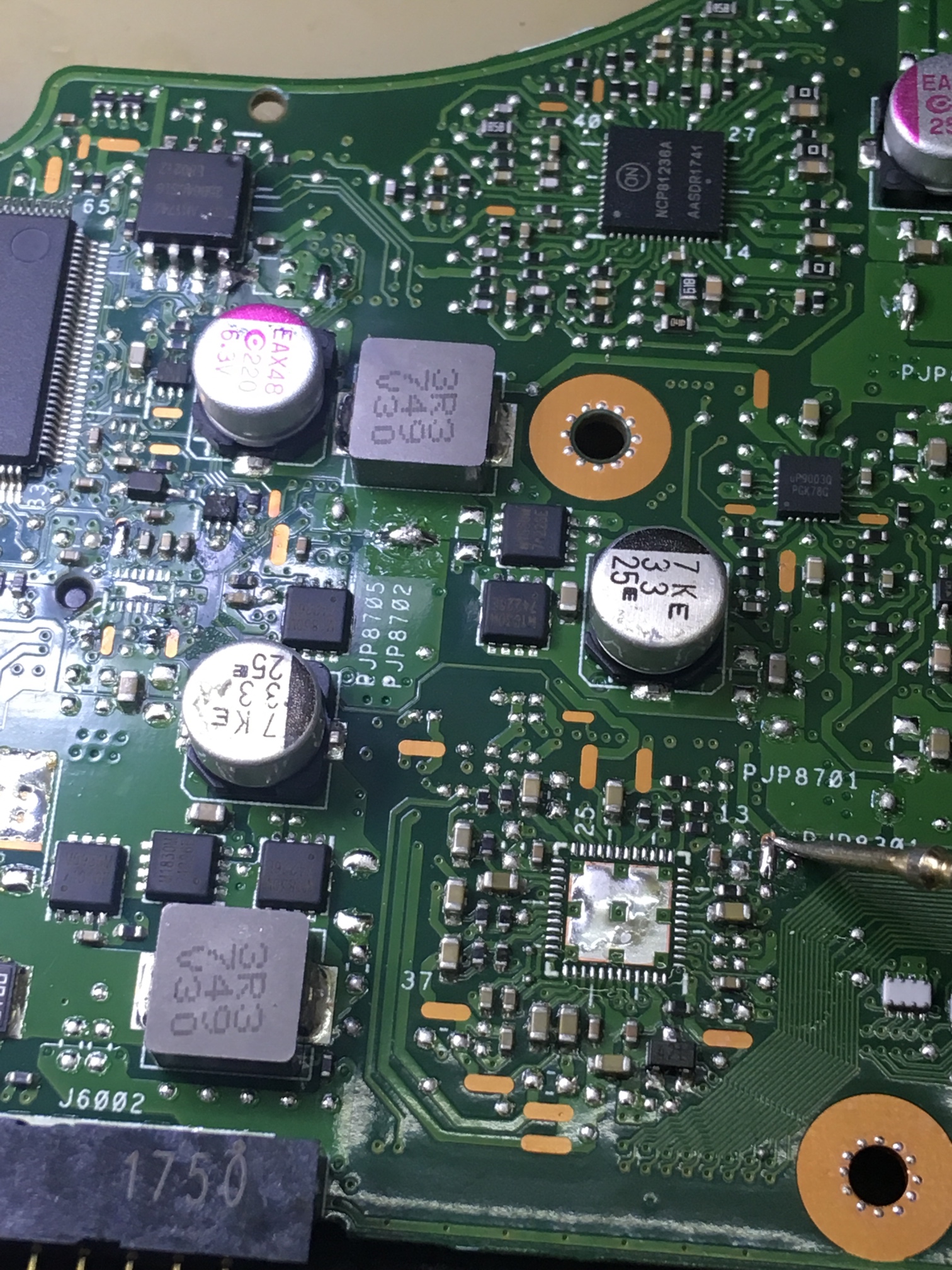 猜测2、假设目前cpu是好的,外部4.7V导致主板工作不正常,我们利用二极管嵌位原理(不懂嵌位的自行补课),相当于变相把cpu串出来的电断开了,再简单点就是把CPU理解为负载,我们给负载接上电,另一端不接输出也不接地,这组供电是不起作用的,也不会让cpu工作,因为没构成回路,这样也切开了CPU输出给外面来的4.7V,完美,不得不佩服楼主的才智