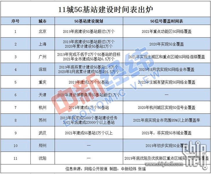 其中,北京预计到2019年底,全市将建设5G基站超过1万个;上海计划2019年将建设5G基站1万个,2020年累计建设5G基站2万个;广州明确2019年完成不低于2万个5G基站的目标,2021年全市建成5G基站6.5万个;深圳规划2019年底将累计建设5G基站1.5万个。