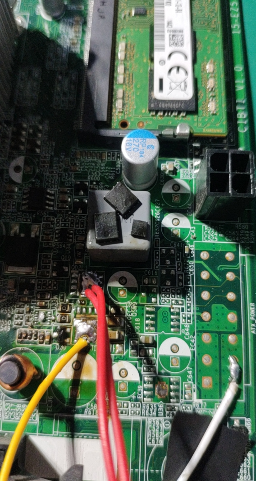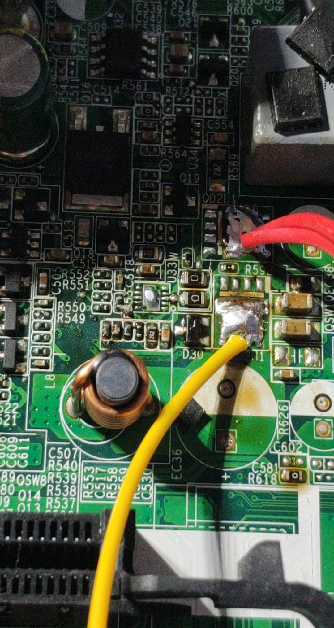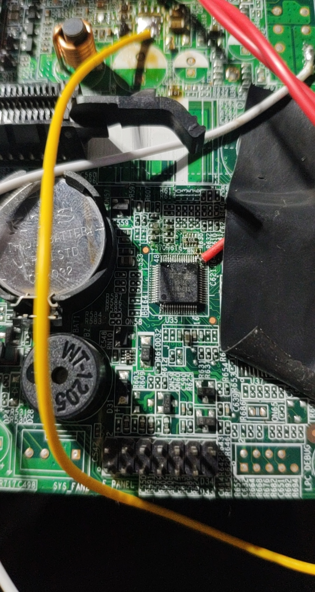 然后找到ec的ps-on,最后连接的第33脚,pwrbtn.该脚位待机时5v,触发后接地,符合LM2596s开关条件,直接飞上,