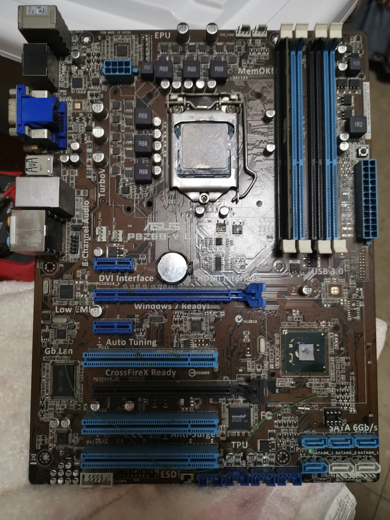 最近有块华硕P8Z68-V LX主板,触发开机提示USB过流短路15秒关机,根据常规方法找到点位图,在点位图里面找到南桥边上的S_USB_OC#信号点共计7个点,电压全部3.2V正常,472电阻另一端5V全部正常,另一端的822电阻阻值全部正常,全部USB 5V对地阻值正常。有老司机帮忙解决下吗。