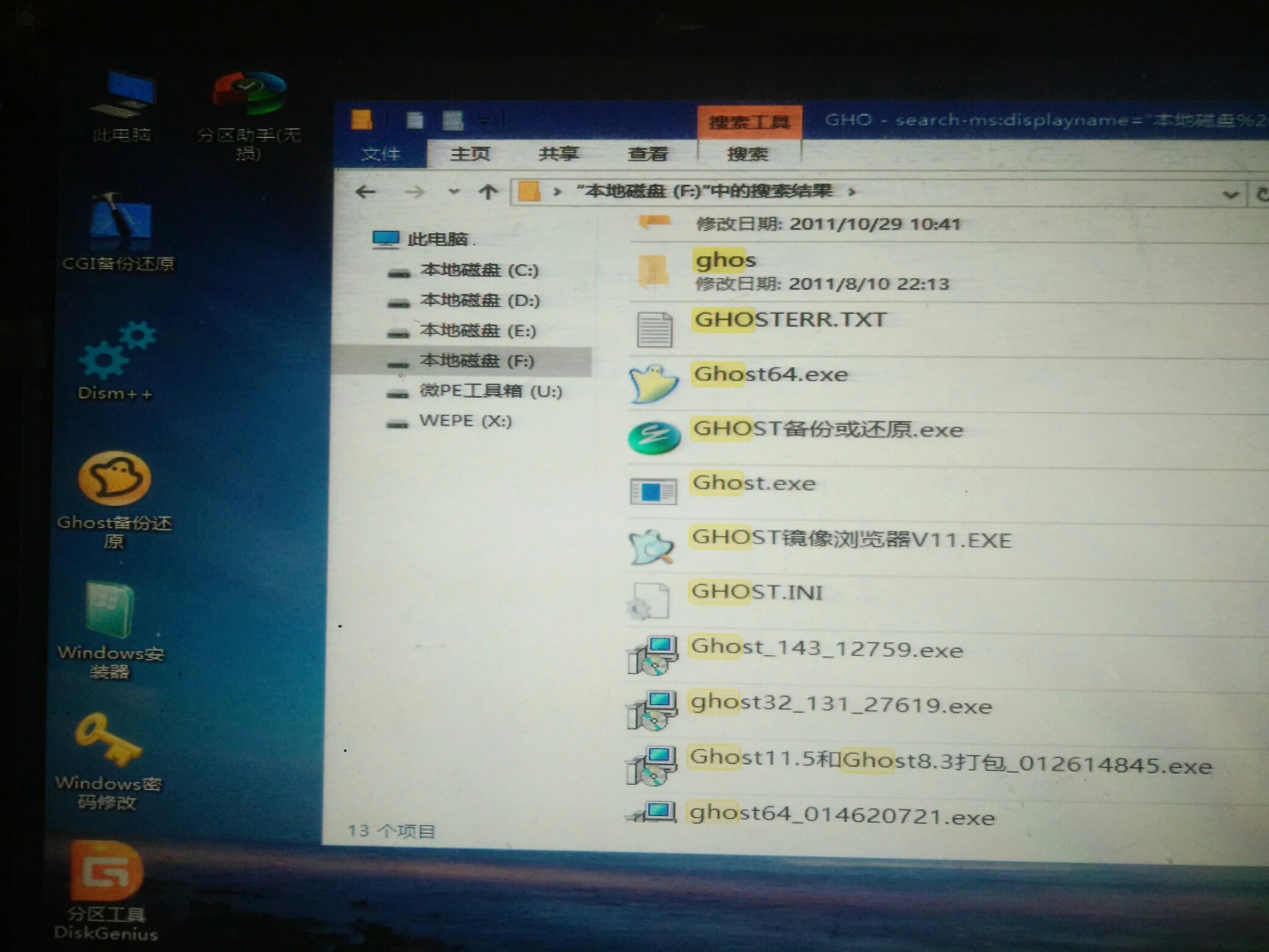 微PE打开F盘搜索到GHOST备份选那个GH0ST还原。