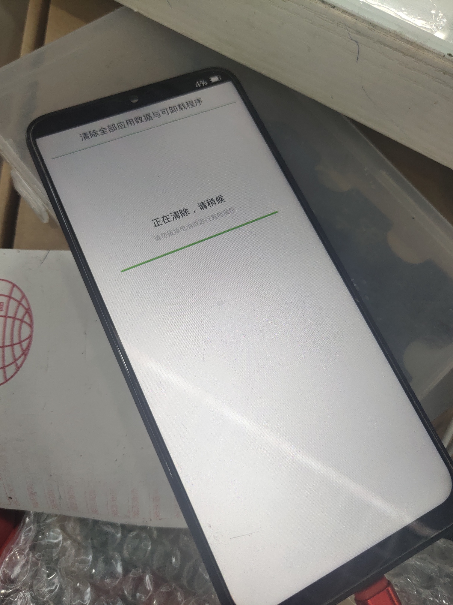 手机开机后会自动执行我们刚刚写入的清楚指令,有时候会一直卡着,别管,包括开机也是,有的会卡半个小时,大家不要心急,多等等。这还运气不错,没出什么意外,直接开机进系统了。最后激活测试,没问题,清理好后盖胶,后盖贴上3M胶和PUR胶,完美装机。