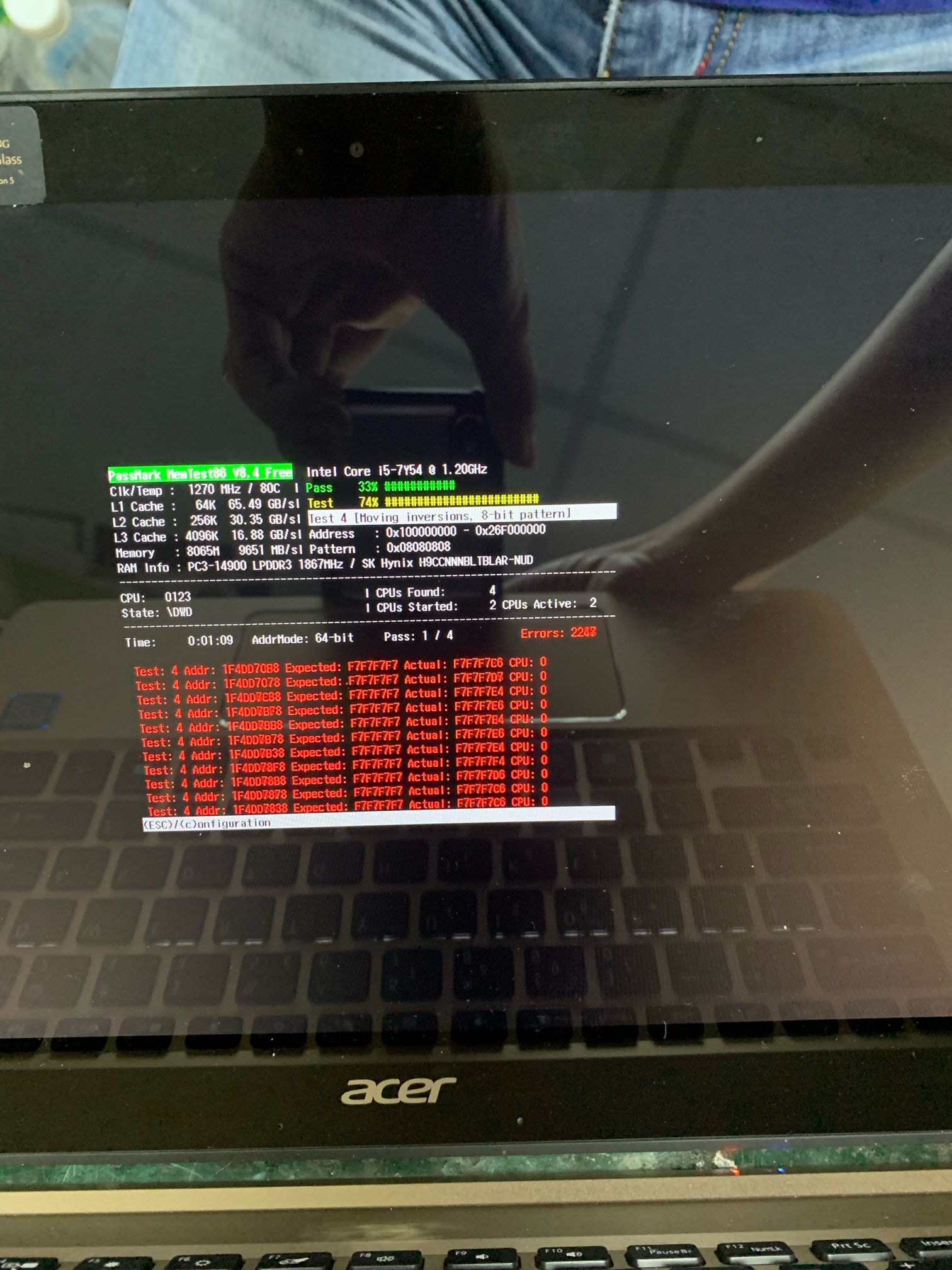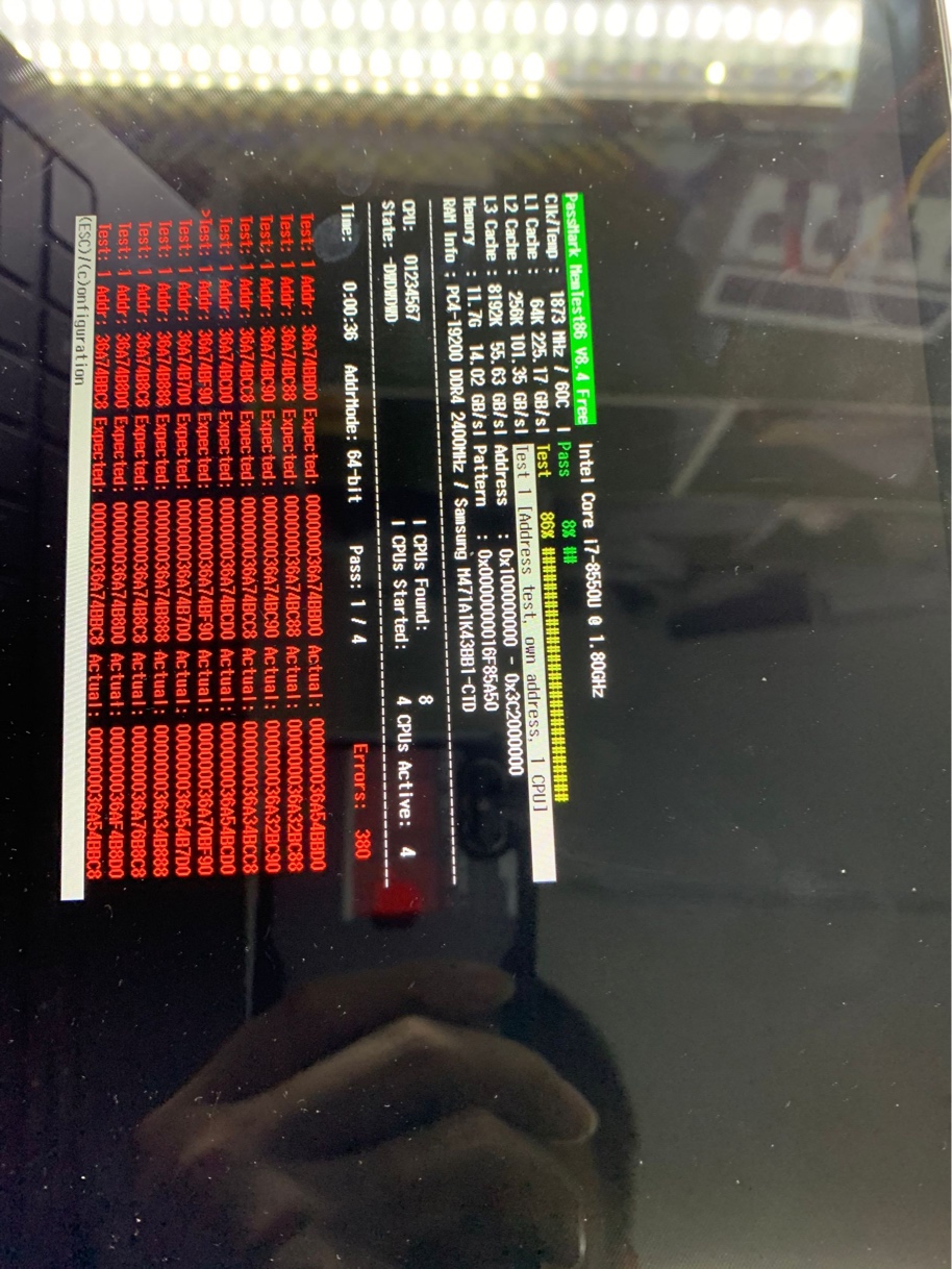 最近遇到两台比较新的机,都是可以开机显示,装系统会报错,然后用内存检测软件测试,发现板载内存,全部损坏