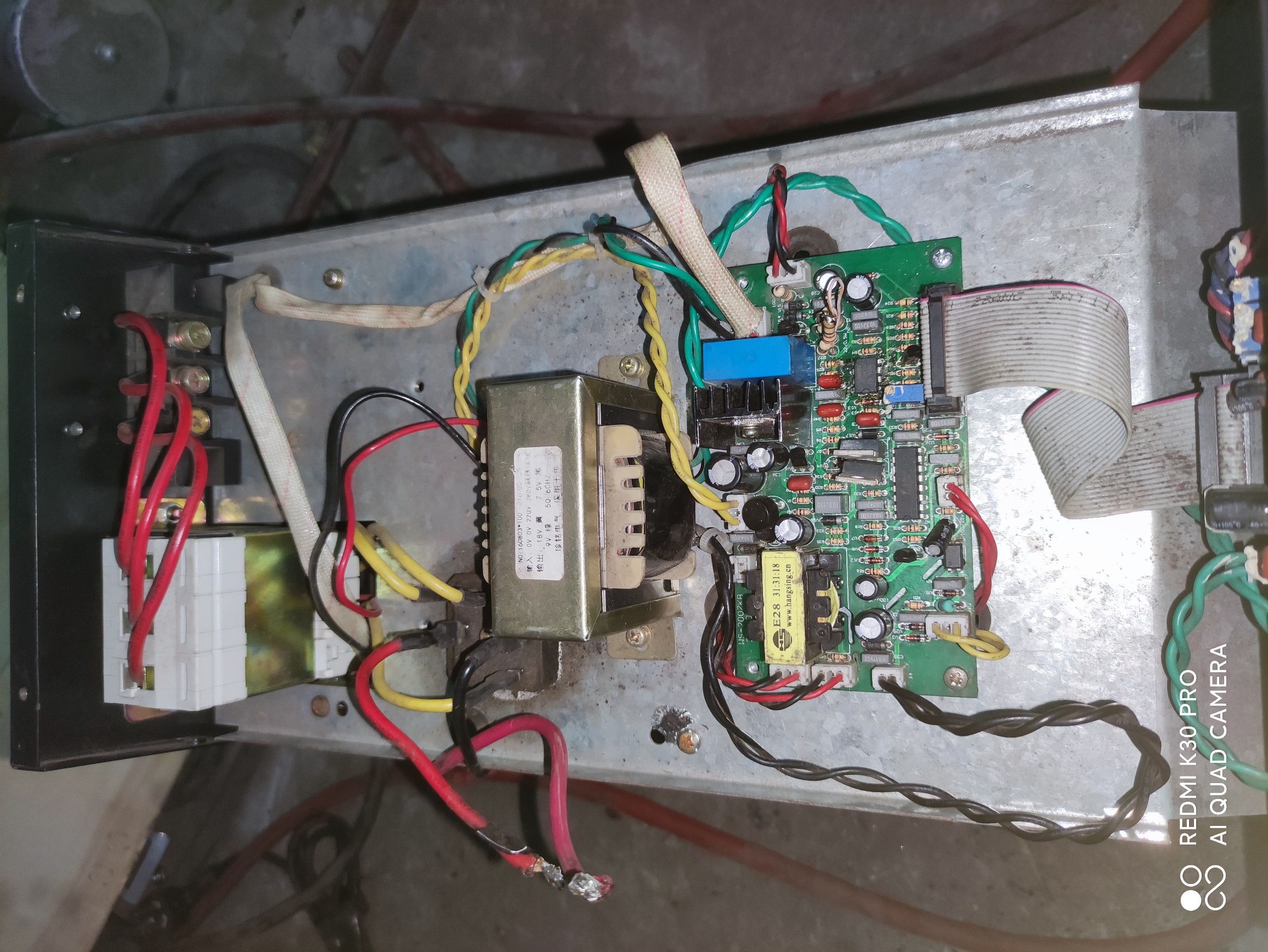 接到一台焊机,拆开检查,发现功率管全都没有,整流管输出接了一个60A保险丝,先恢复功率管,四个40N120,两个并联是上管,两个并联做下管,一共四个,控制脚的电阻也没有,上了四个4.7欧姆电阻,控制板检查发现lm393已经损坏,脚都断了,更换,恢复周边电路,上电测试,发现电流调节正常,但是碰极电路不对,检查发现可控硅已经炸裂,更换,经过加模拟电压测试,电流调节和过电流都正常动作,驱动波形正常,送电测试,正常工作