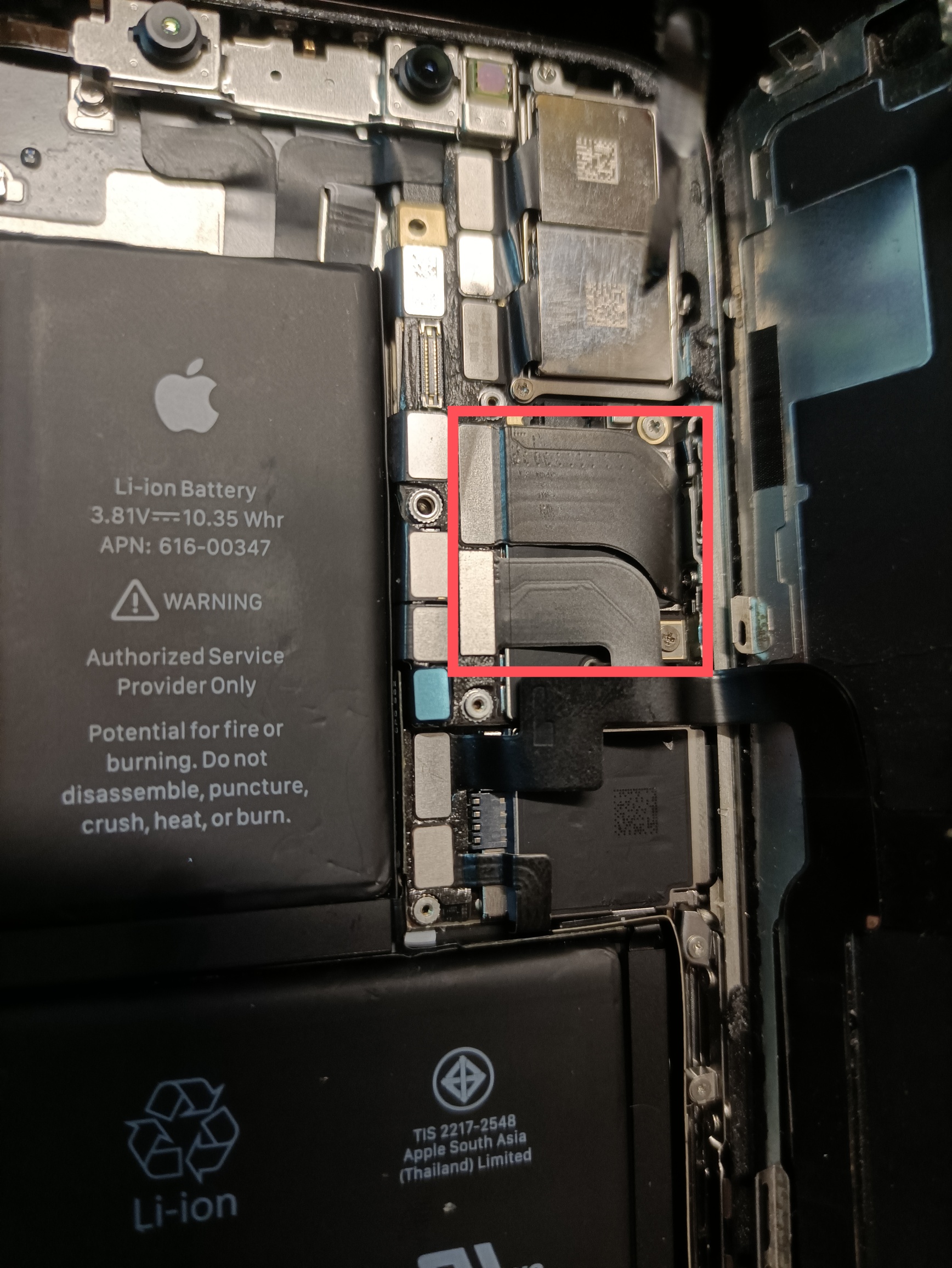 一台苹果x.,从楼上摔下去,以后开机进不去系统,一直重启,开机电流跳到250一下就归零了,图中框框部分发热严重,求大佬分析一下,还有维修的必要吗?维修费大概要多少?