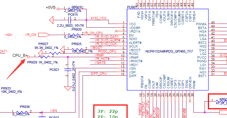 然后慢慢检查发现CPU集显供电不出,CPU供电芯片10脚VRMP电压0.02异常,隔断PR929 CPU_B+公共点一端铜箔,打值CPU_B+无穷大应该是板层断线,从PL901飞线至PR929,裸板触发电流0.81顺利亮机。