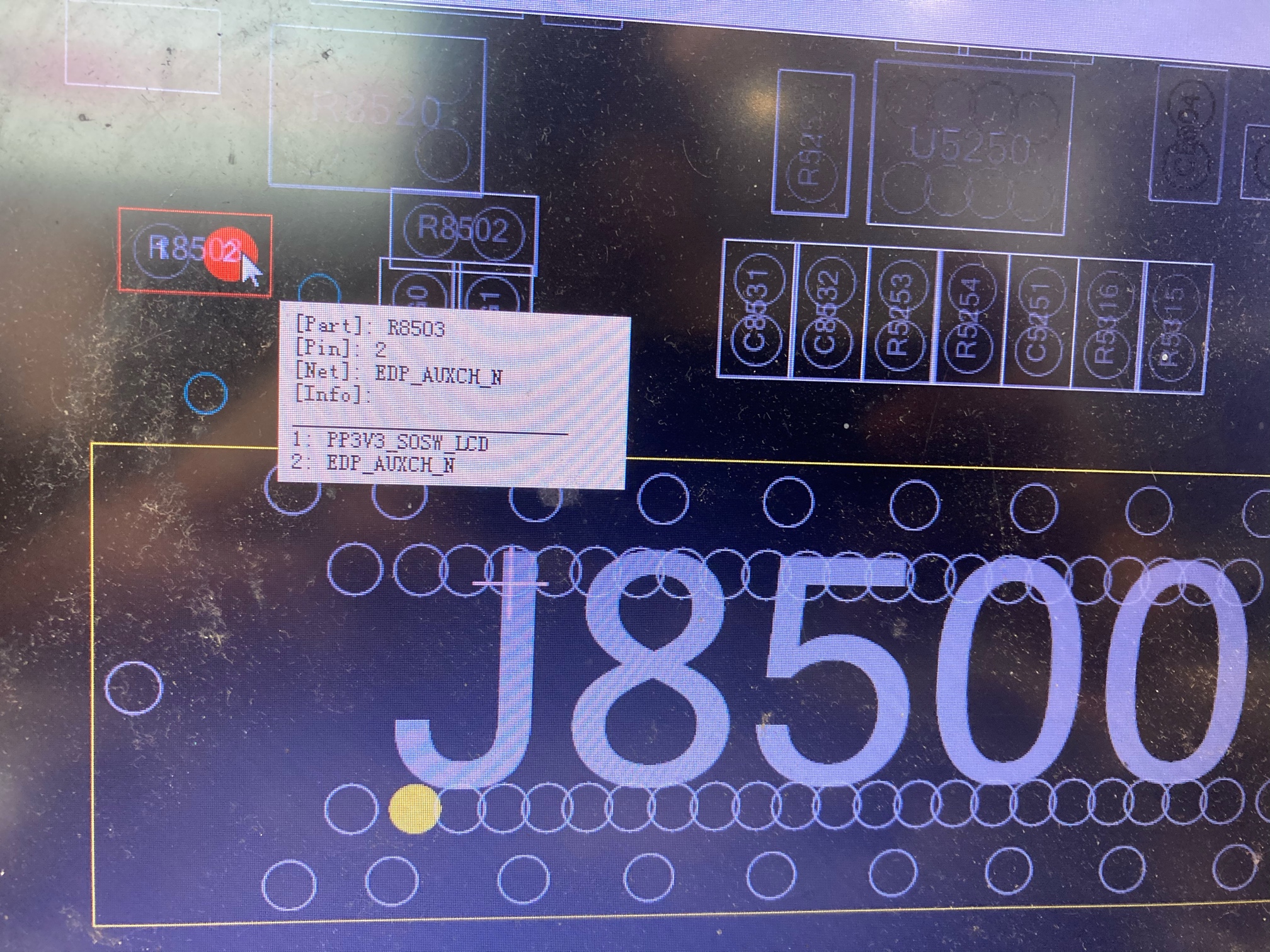 这个点应该是通往显示屏的一路差分信号,理论上不应该这么小的阻值,你可以量另一路edp-aux信号的阻值作为参考