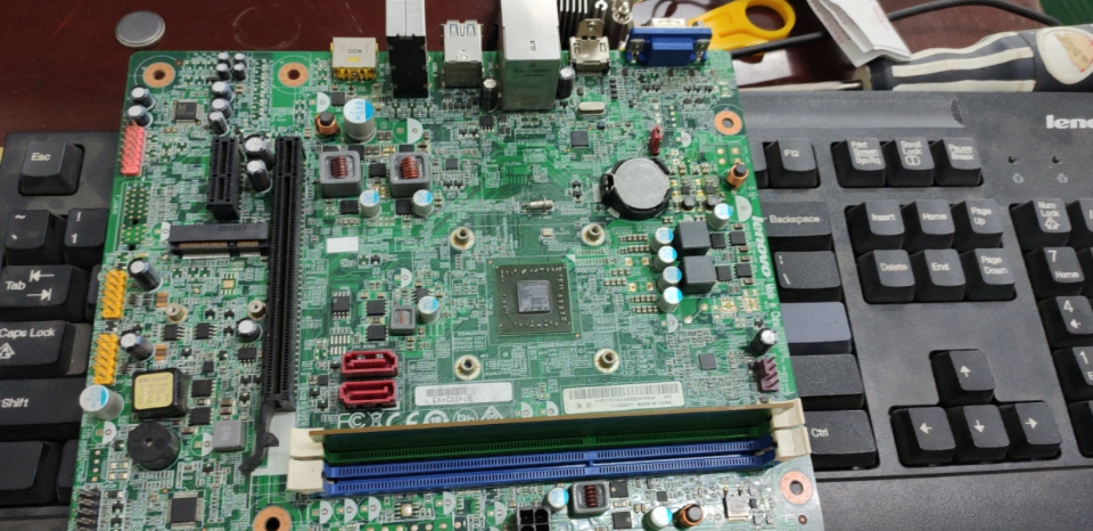 第一次见到使用扁口的主板,查开机条件,io没有发出ps-on#,上拉电压1p8v对地短路,烧鸡发现cpu发烫,喜提料板一块