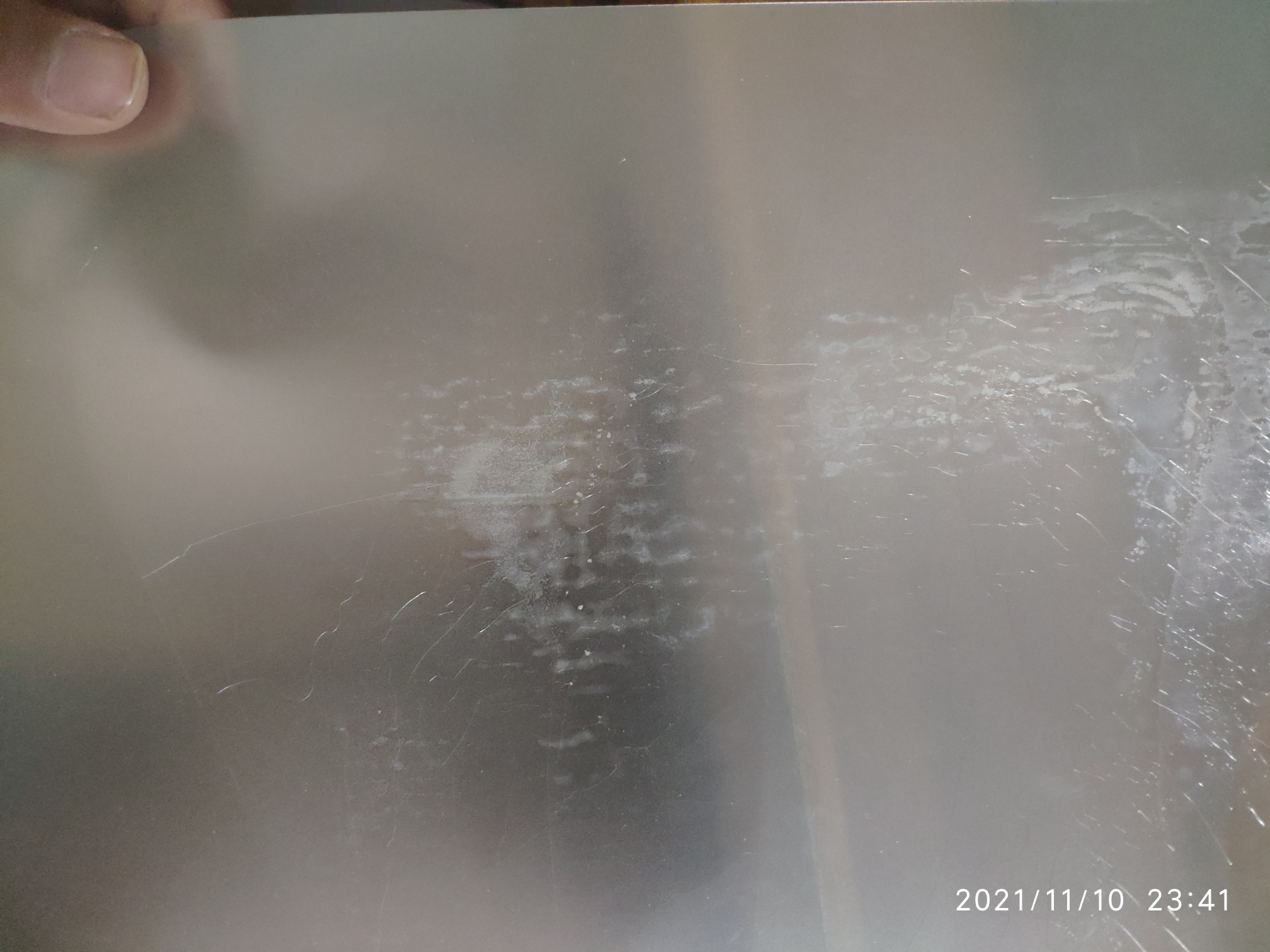 18年淘了个AOC if23显示器,当时内膜起泡上端靠近cof的地方起泡,不严重将就用着。后面搞了个HP ZR24W,就把它放一边了。再后来发现起泡越来越严重,干脆就等它坏得差不多再换内膜,听说很难撕。近段时间拿出来通电看了一下,非常严重该换了。首先某宝上买了角度测试的偏光膜,拆开一看好像漏液,感觉是从内膜流出来的,背光最外层扩散膜腐蚀损坏、液晶金属外框腐蚀生锈。进行清洗并测试角度,测得内膜为0度偏光膜。先撕内膜看看好不好撕,确保撕膜后液晶原好再买配件。不太好撕,要顺着液晶由上往下撕,先划5公分的,分几次撕(花了近一个小时)。然后清胶,没有刀片就用布加无水酒精擦,花了近两个小时才清完。下单买配件,23寸16:9~0度偏光膜一张,LED背光及控制板一套,扩散膜一张(型号W210,可能有更好的)。贴膜很费劲,主要是要除尘(有条件的在无尘车间进行,事半功倍),贴膜没工具,有很多气泡(有条件的在大桌上用工具进行,大展身手)。最后改好背光换好膜就是刚买时候那样了(有气泡的地像漏光,漏光是膜的问题?),内膜的气泡用手指甲轻轻压,小的会压消失,大的消不了,也将就用了。感觉改LED背光不能用原来的扩散膜,好会发红。