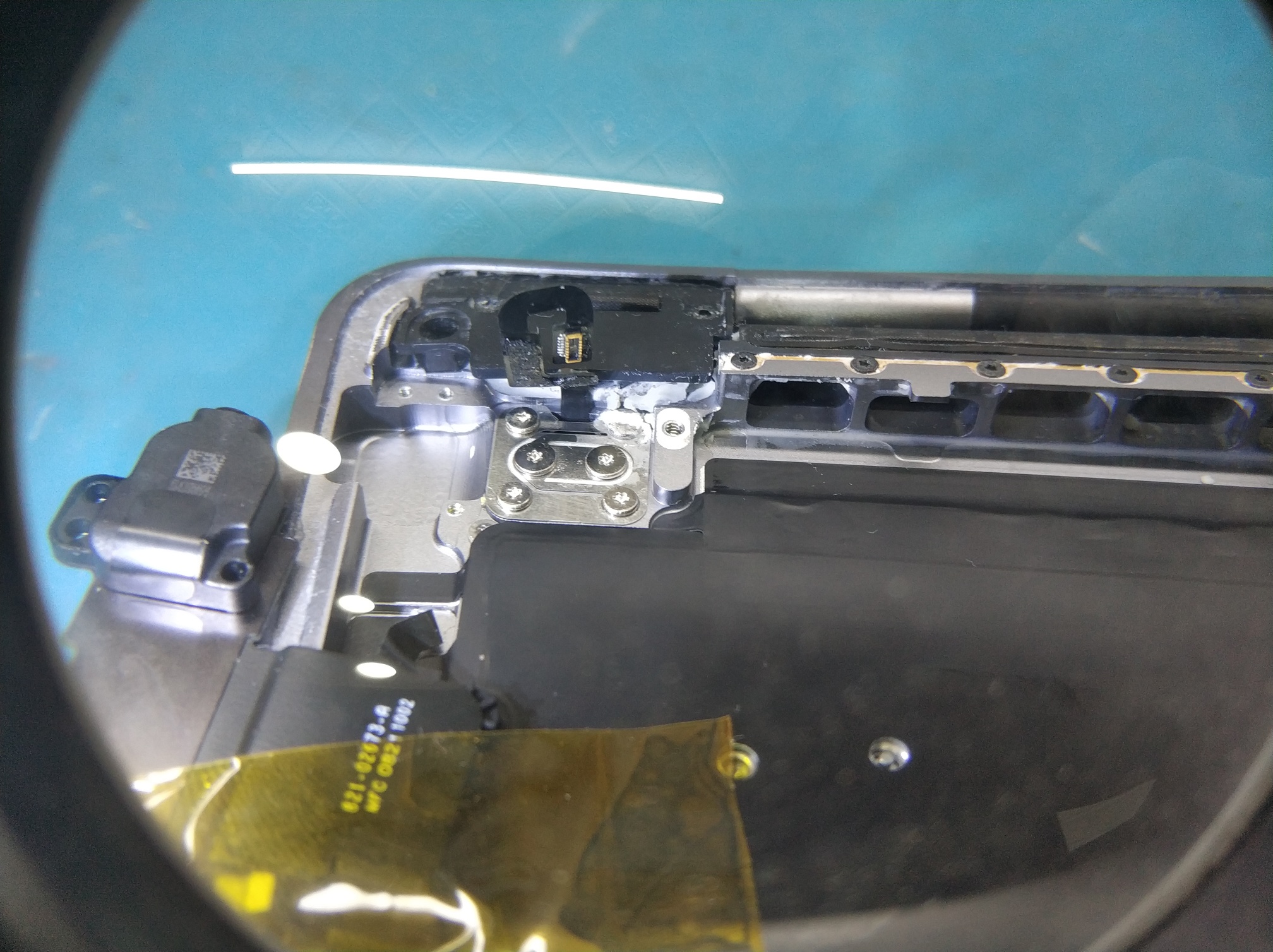开机屏幕是这样的,一般这种就直接换屏幕总成了,费用至少也要块3k了。本着为客户省点的原则,在同行群里发帖求助,后联系到一位深圳的同行说可以修复,价格也在可接受范围。接下来就拆机检查下主板情况。这么新的苹果还是第一次拆,中间还把后盖上的一个卡扣贴片给搞下来了