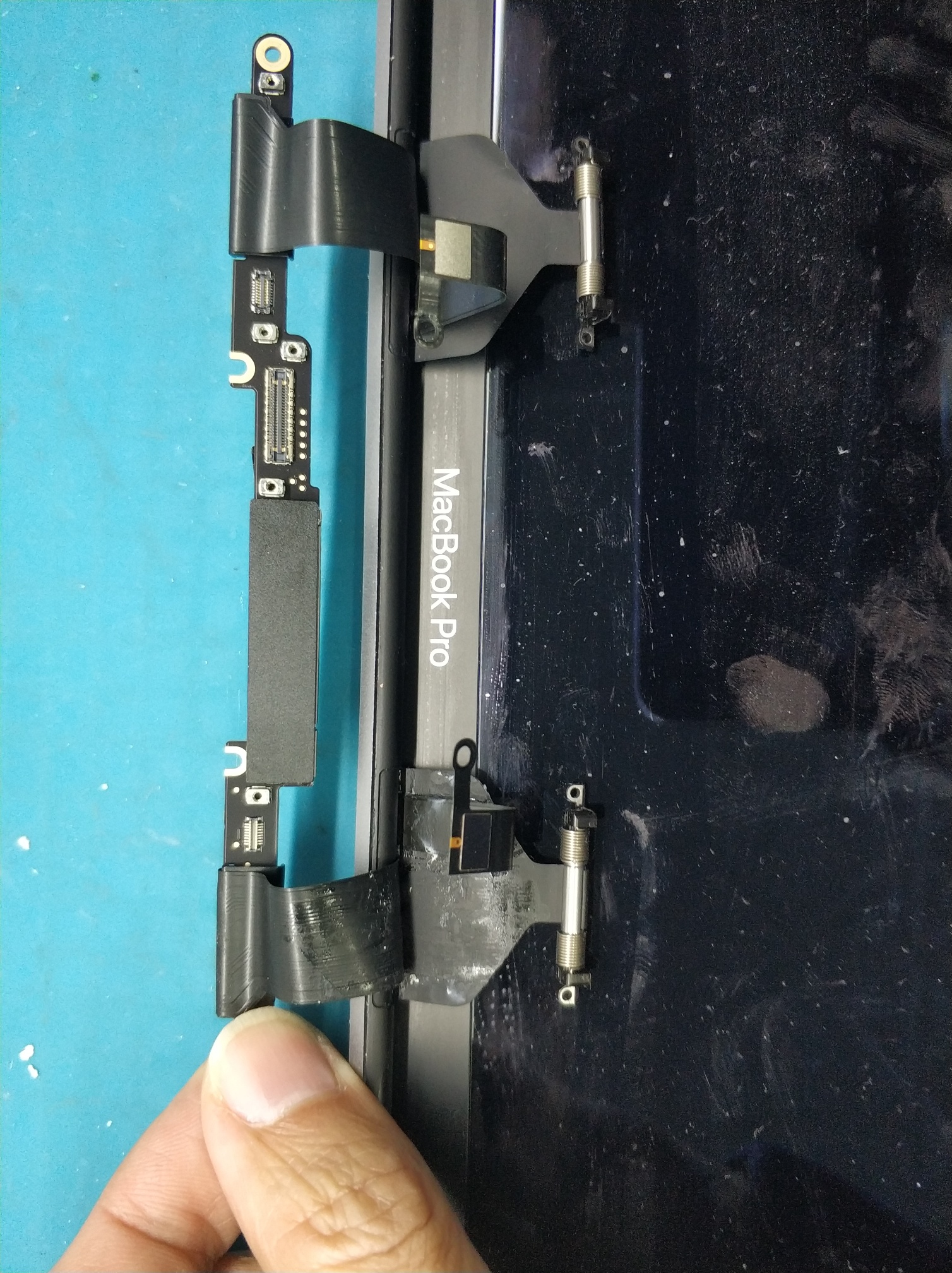 靠顶部这个位置,大小螺丝全部拆掉,拿下这个压条就可以把屏幕整个拿下来了。接下来就简单了,打包发同行,修复回来装上,完美