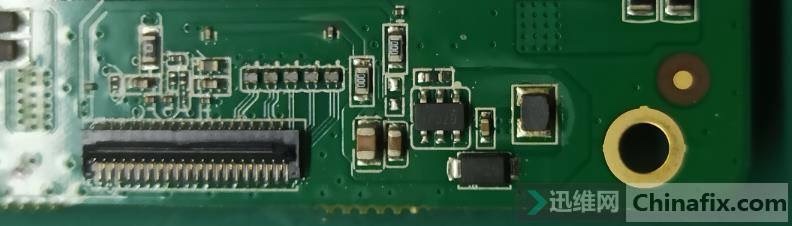 发现主板屏接口旁边有一个电容有发黄的痕迹,测量并没有短路。扣之,再看LED