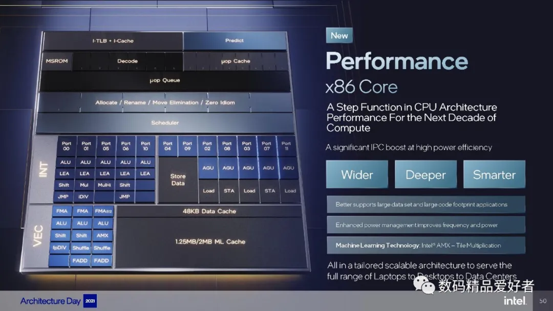 第12代酷睿的平台代号为“Alder Lake”(桤木湖),除了采用最新的Intel 7工艺以外,最大特色就是采用了大小核设计,内置高性能的P核心和高效能的E核心,前者微架构是Golden Cove微架构,支持超线程技术、AVX-512指令集和DLBoost深度学习加速功能;