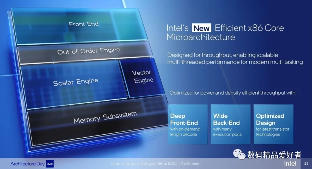 后者微架构是Gracemont,它是第一个支持AVX2指令集的Atom核心,支持整数AI操作新扩展、Intel控制流强制技术和Intel虚拟化重定向保护技术。