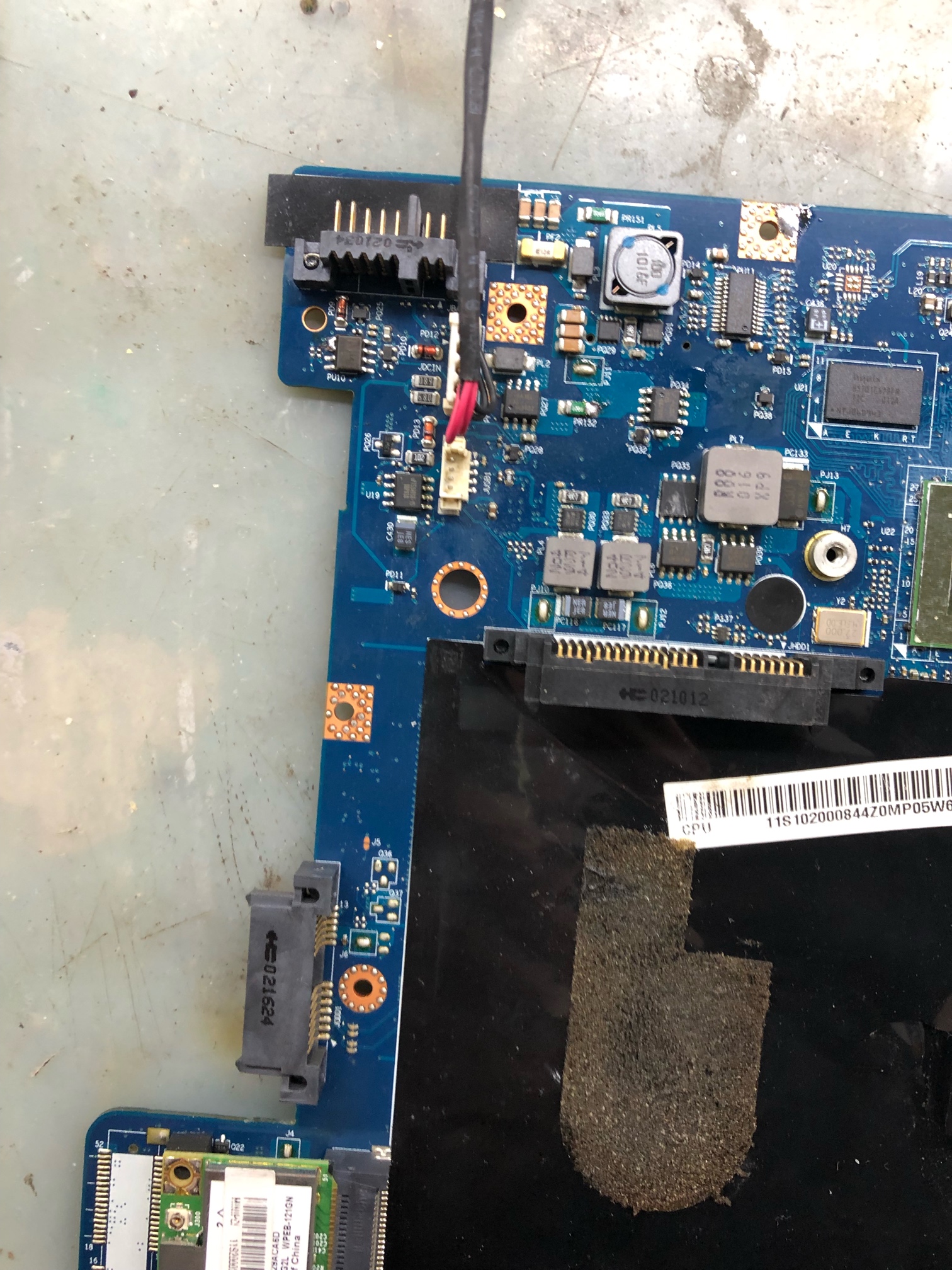 接机一台联想g460,故障为插电待机000按开机不触发,客户说在别家修过没修好让换主板他没干就拿到我这里了,心想歇菜,就我这三板斧二修估计大概率会翻车,不管了既然都拿来了就拆开看看吧,拆机检查发现上家就焊了开关排线,焊了小电池,确认过眼神,三板斧后继有人,先来捡个漏量下公共点,发现不短路失望,上电量一下吧,发现公共点只有8伏多,这明显不对啊假公共点,依稀记的以前看过饼哥仁宝点火回路的视频,这情况肯定保护隔离没过,量了下隔离管果然,在点火回路中pacin必须为高才能导通,看图纸在比较器pu10的1脚上量到pacin为0伏果然,2脚有3.3伏,我不要你比较了,直接一坨锡把它一二脚连起来,在量公共点已有19v,就此维修完毕,插电开机屏幕轻松点亮
