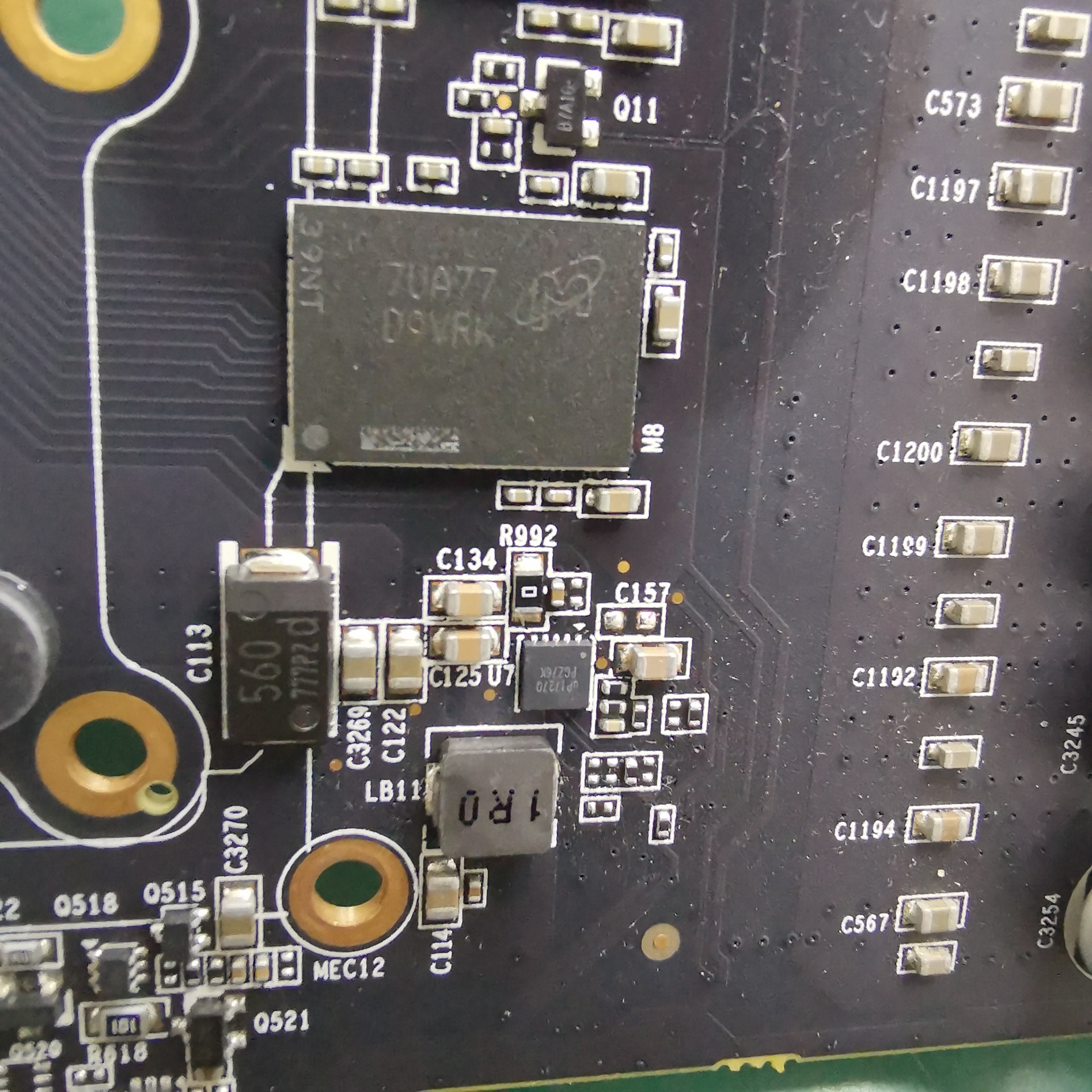 出现这种情况只能是U7 PEX供电芯片本身原因了肯定是芯片5V供电直接串到供电输出引脚的原因了,那直接换芯片吧,看了一下该芯片是UP1727Q手头上暂时没有。