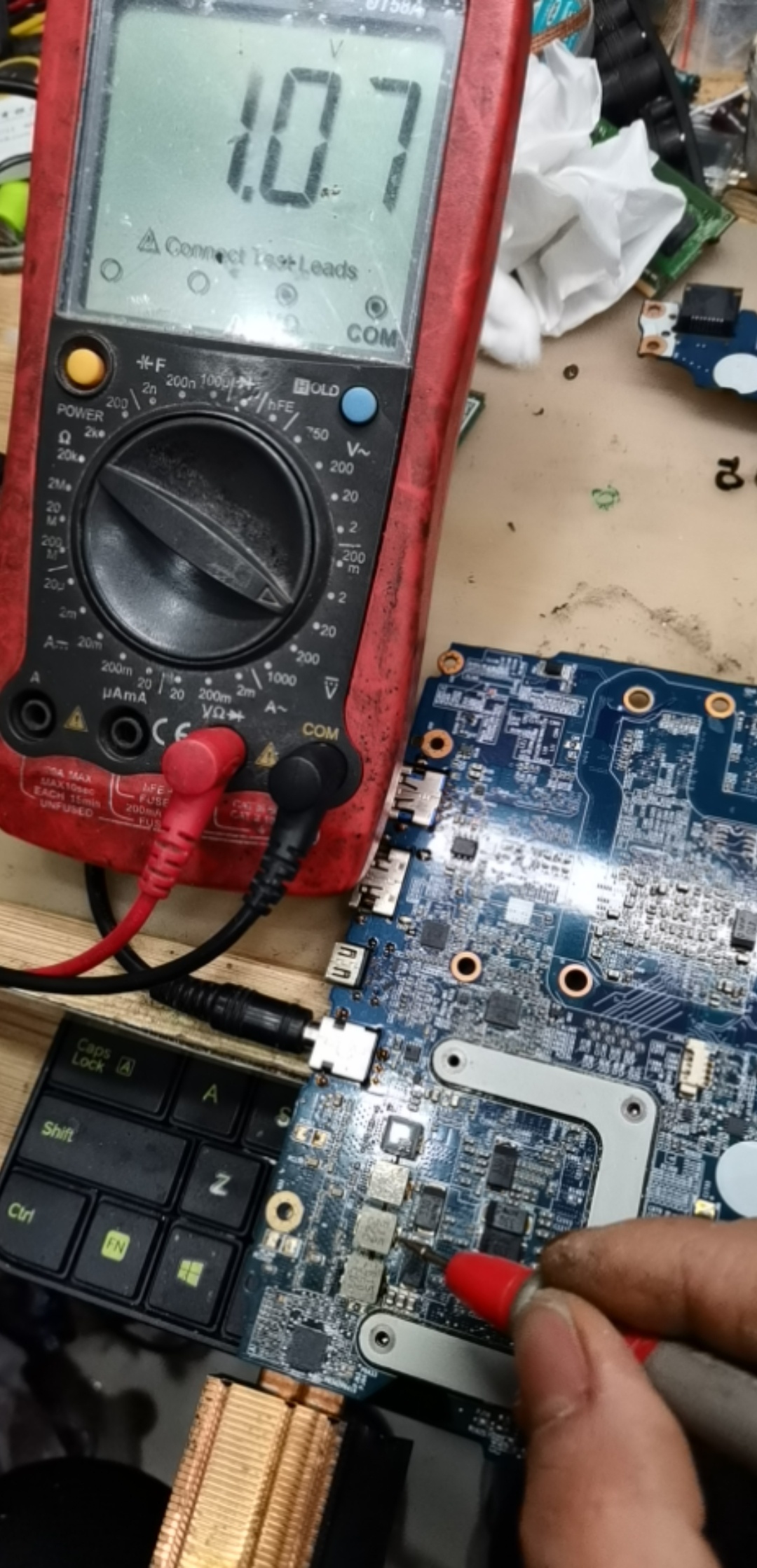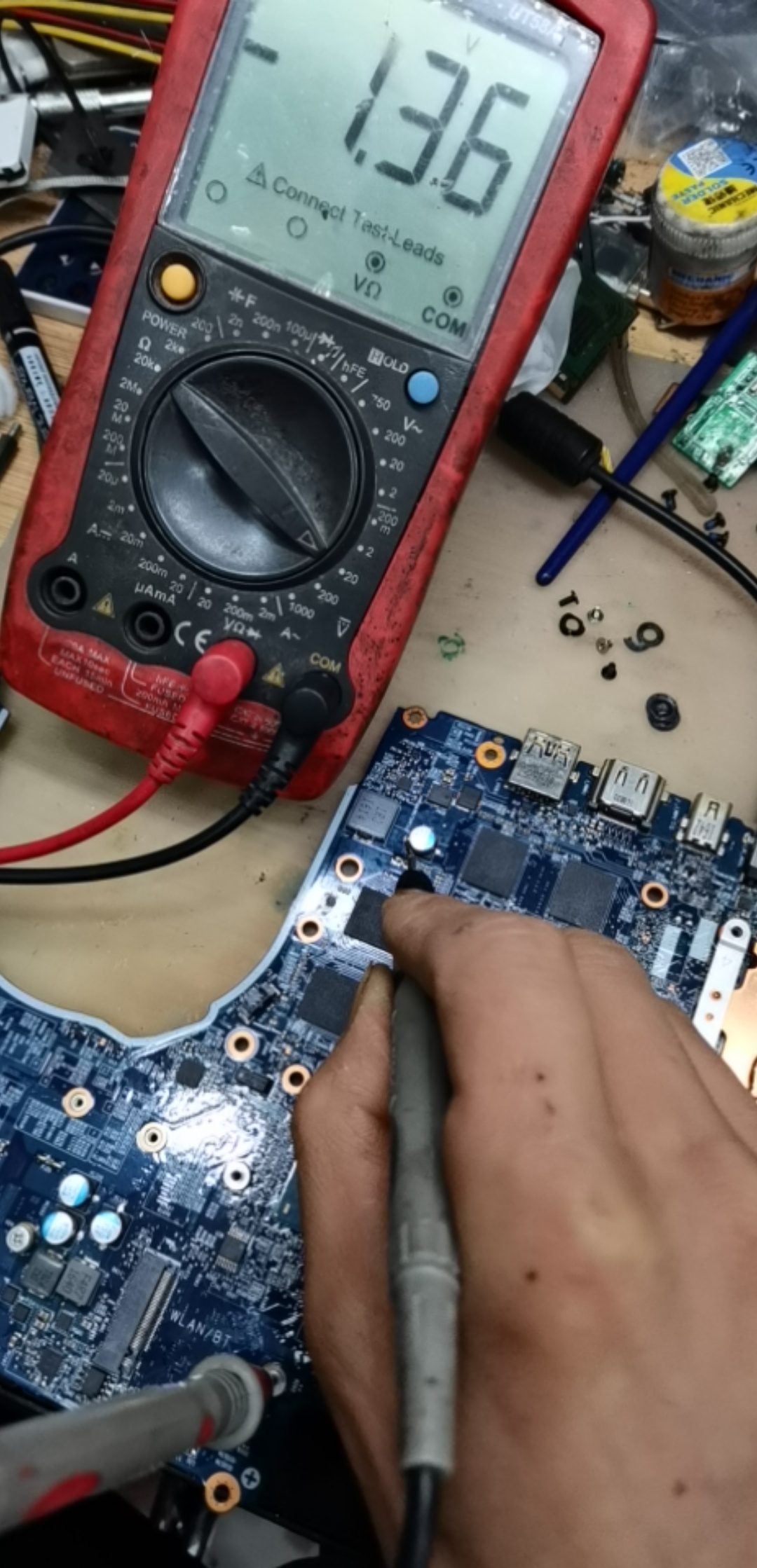 炫龙板号6-71-N150R0-D02A开机到1.2A不显,所有电感无短路,除核显供电没测到其余供电都正常包括独显供电都正常。内存有复位 开机内存数据脚有波形过几秒后就了。BIOS刷过好几个了没思路了请大神们分析一下