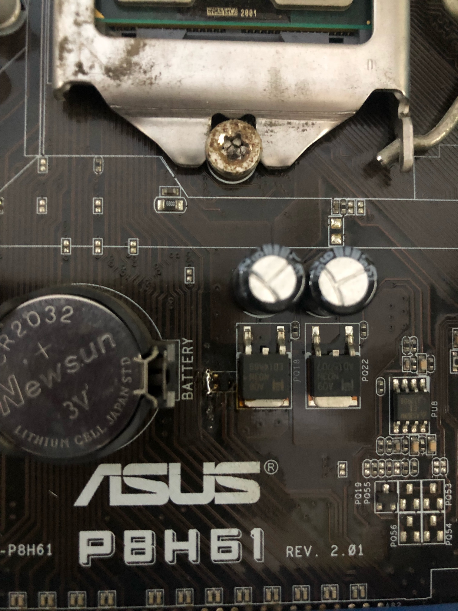 华硕h61 coms电池漏电都电阻坏,一坨锡开机coms不报错,