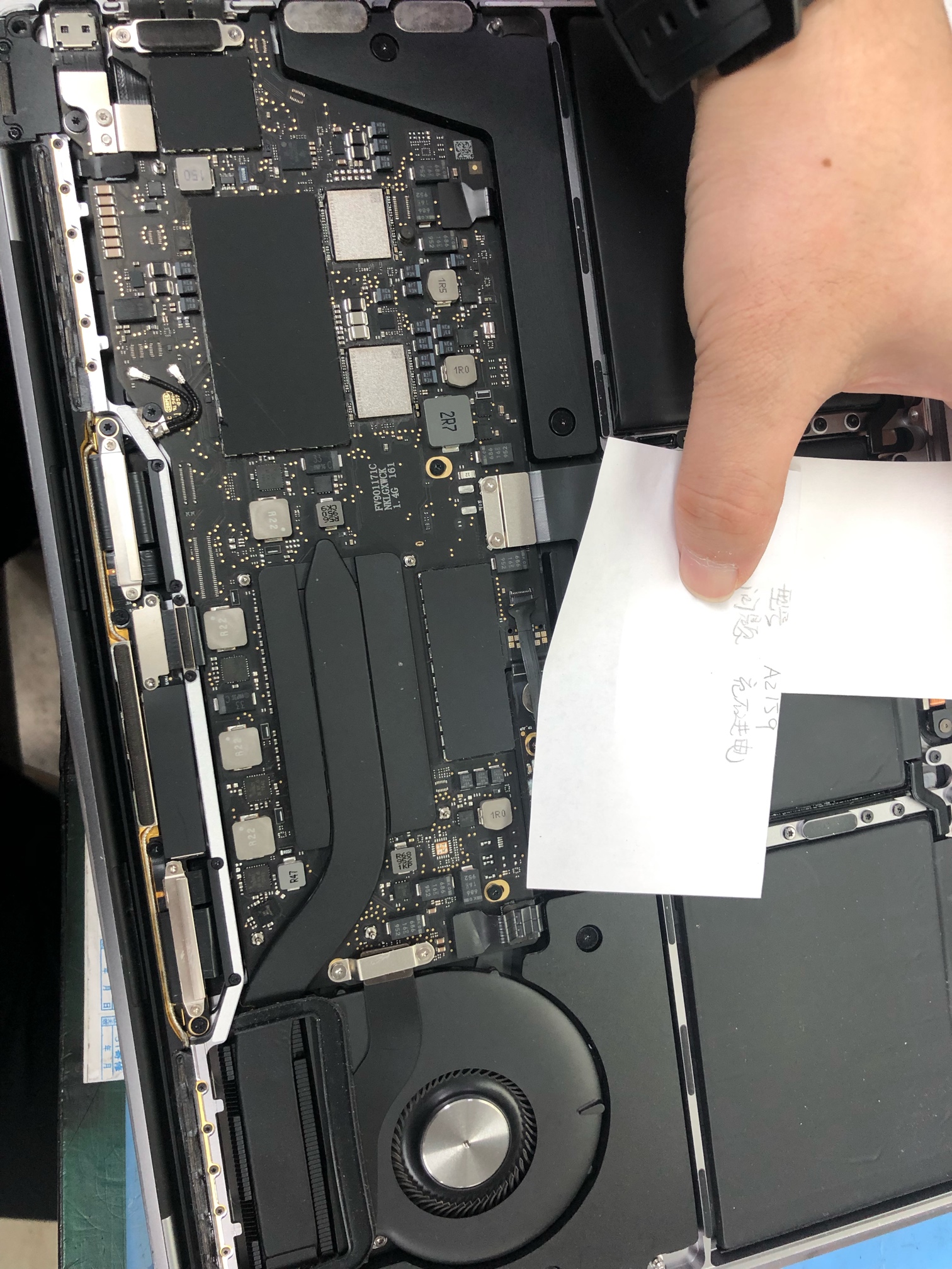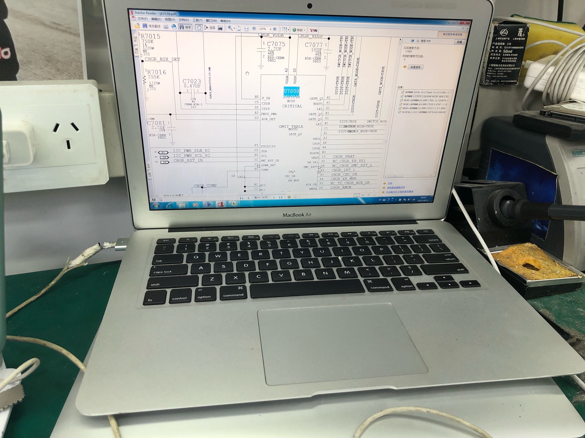 苹果笔记本A2159不充电,主板短路,量测U7000有问题,更换OK