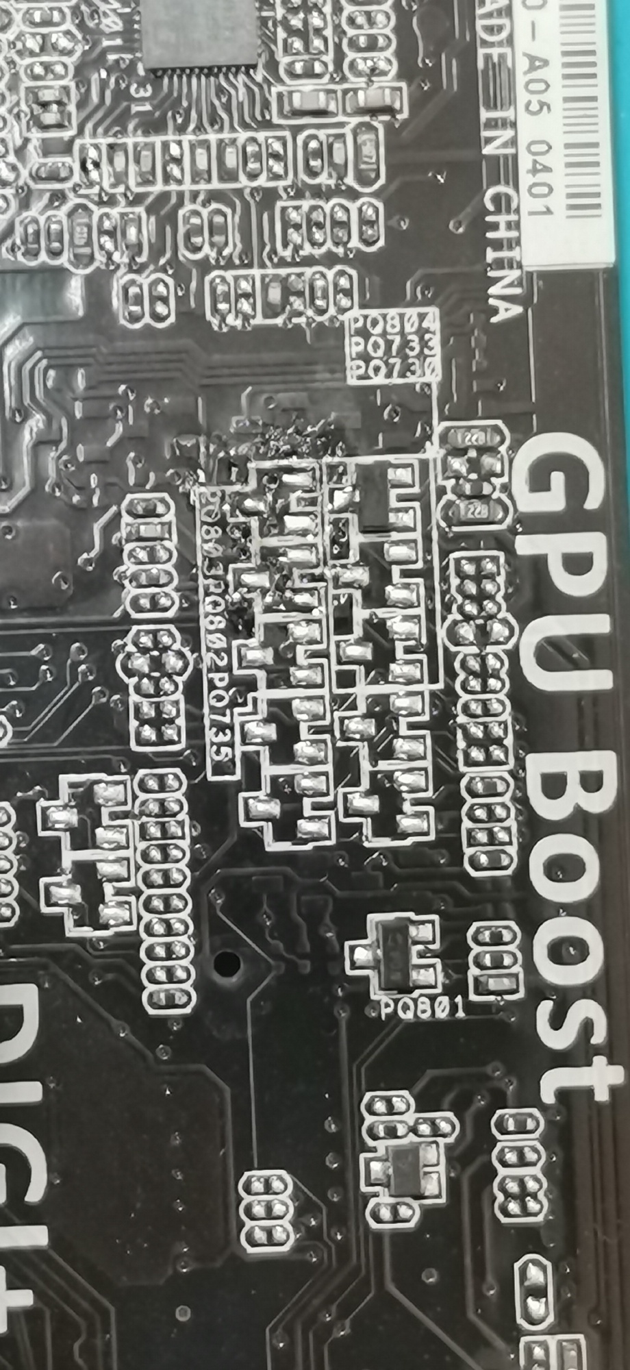 接到一块H81M-D开机反复掉电不开机,报了价钱告知客户2个小时后过来取。开始捡钱,按照这个型号板子的通病取掉PQ802,PQ803,板子正常开机