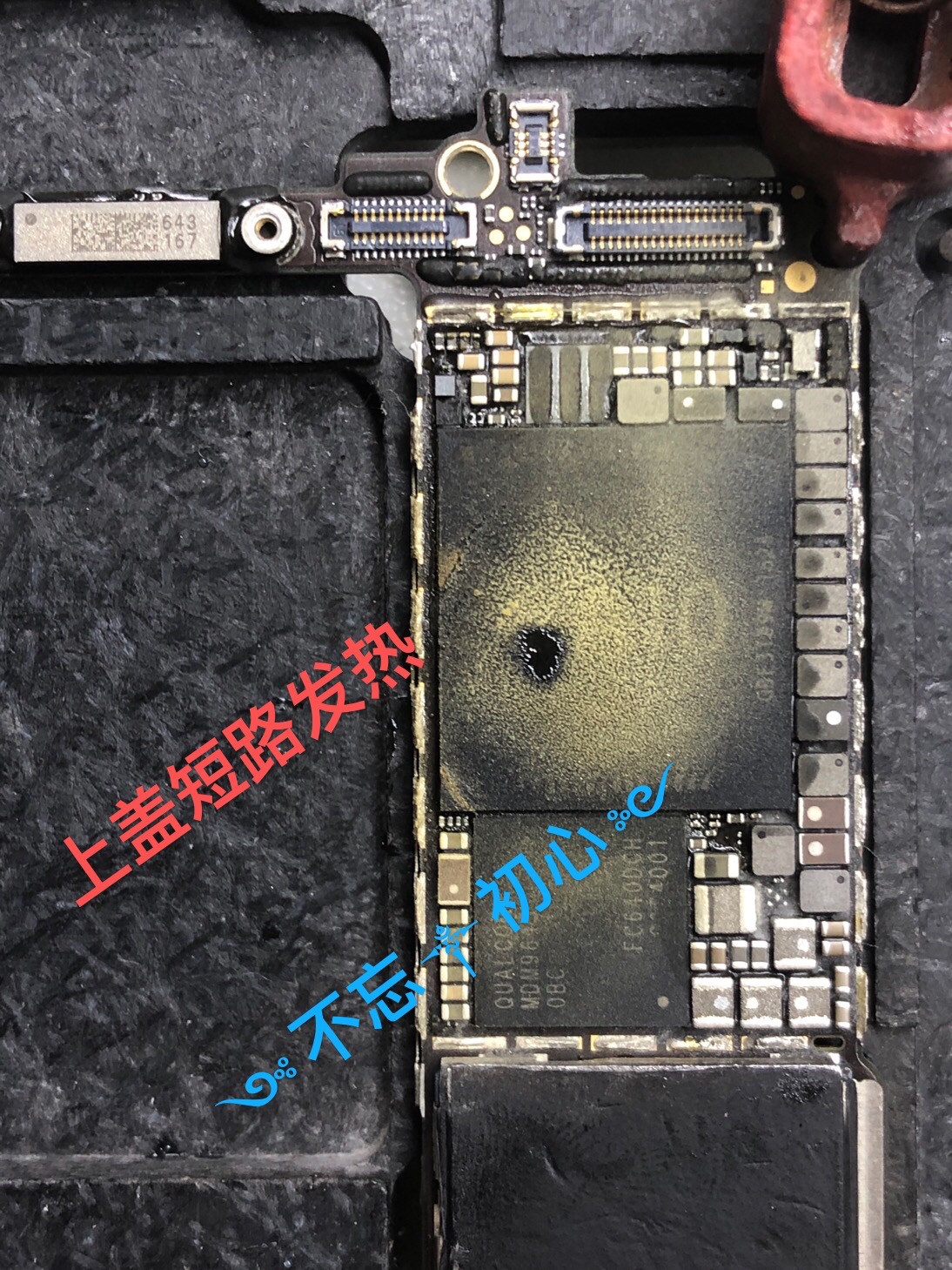 苹果7重摔上盖发热短路,单换运存后保资料成功……