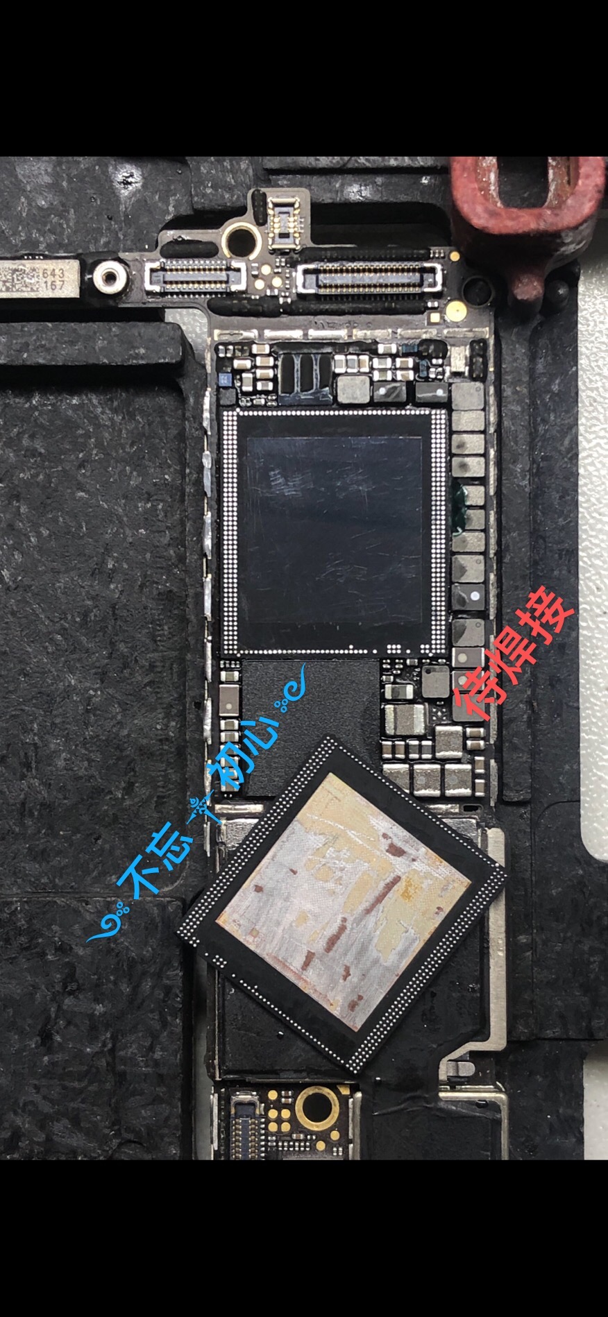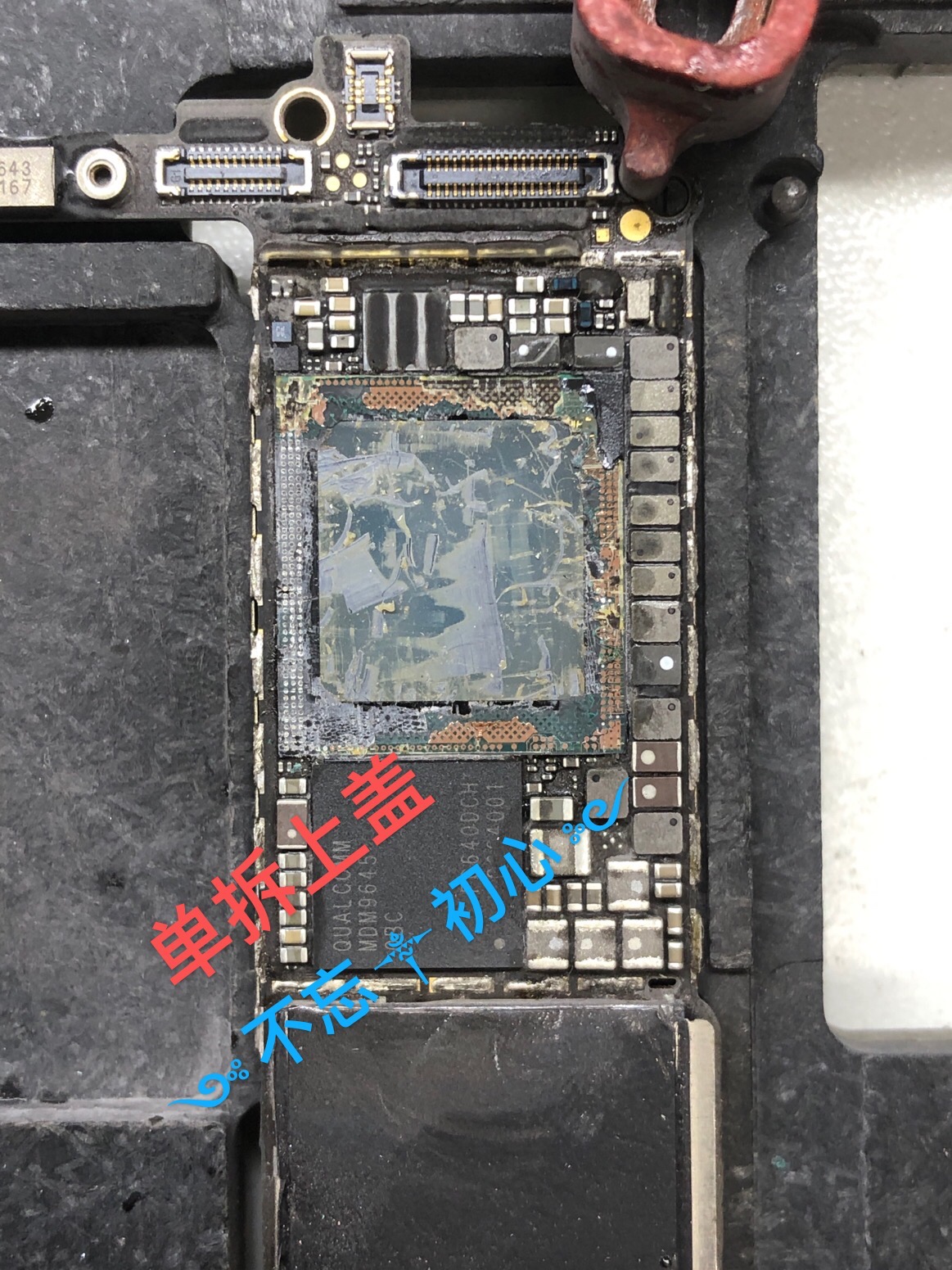 故障机上盖是风枪小口点吹硬翘下来的,安装的上盖是其它机手工打磨的……