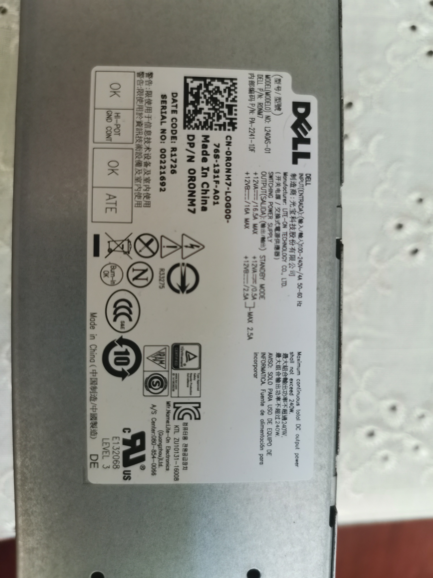 Dell L240AS 电源,测白线12v,绿线4.5v开机无动作,电源是否正常,如何维修