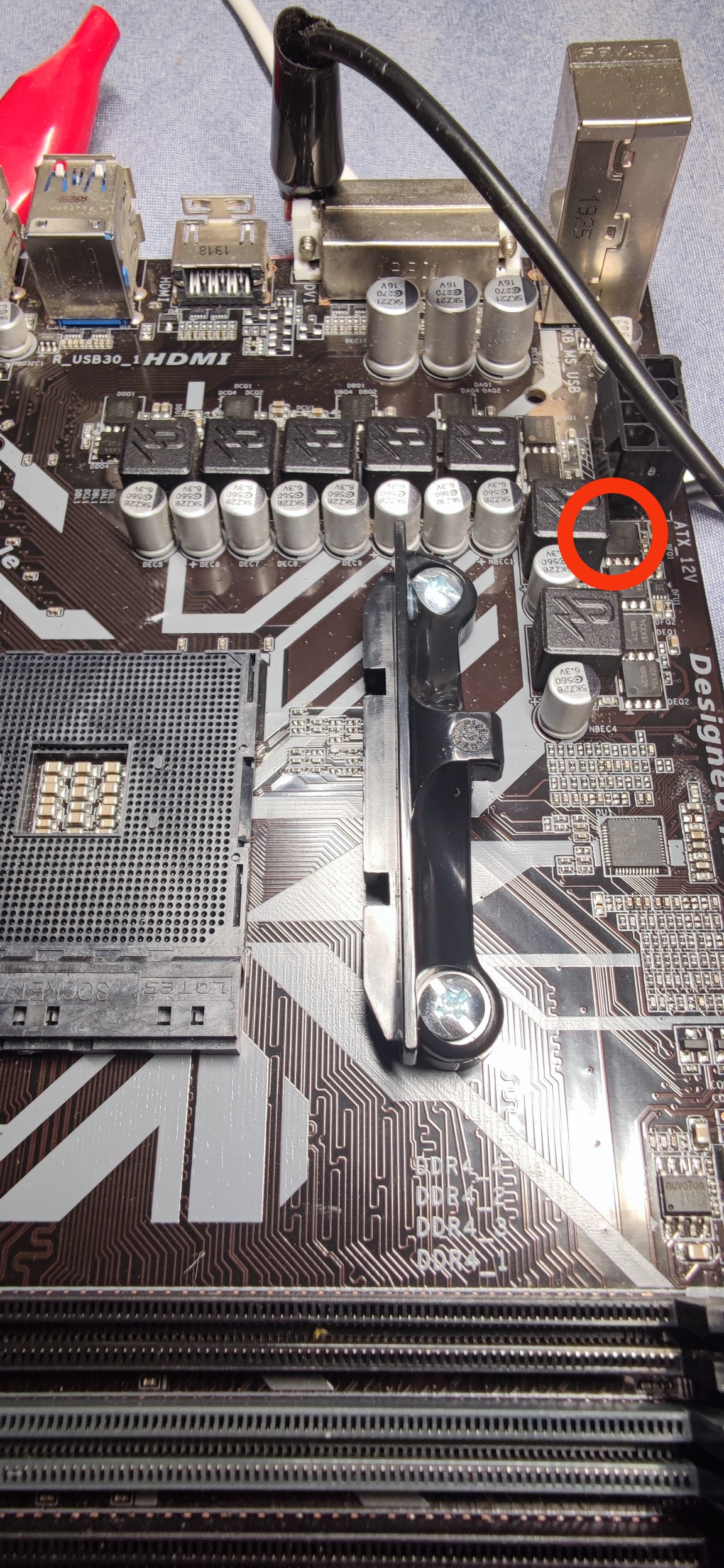 技嘉B450,开机电源无反应,测24Pin各路供电无短路,CPU插座不装CPU无短路,装上CPU后正向阻值只有0.9欧,是MOS管击穿短路了嘛?