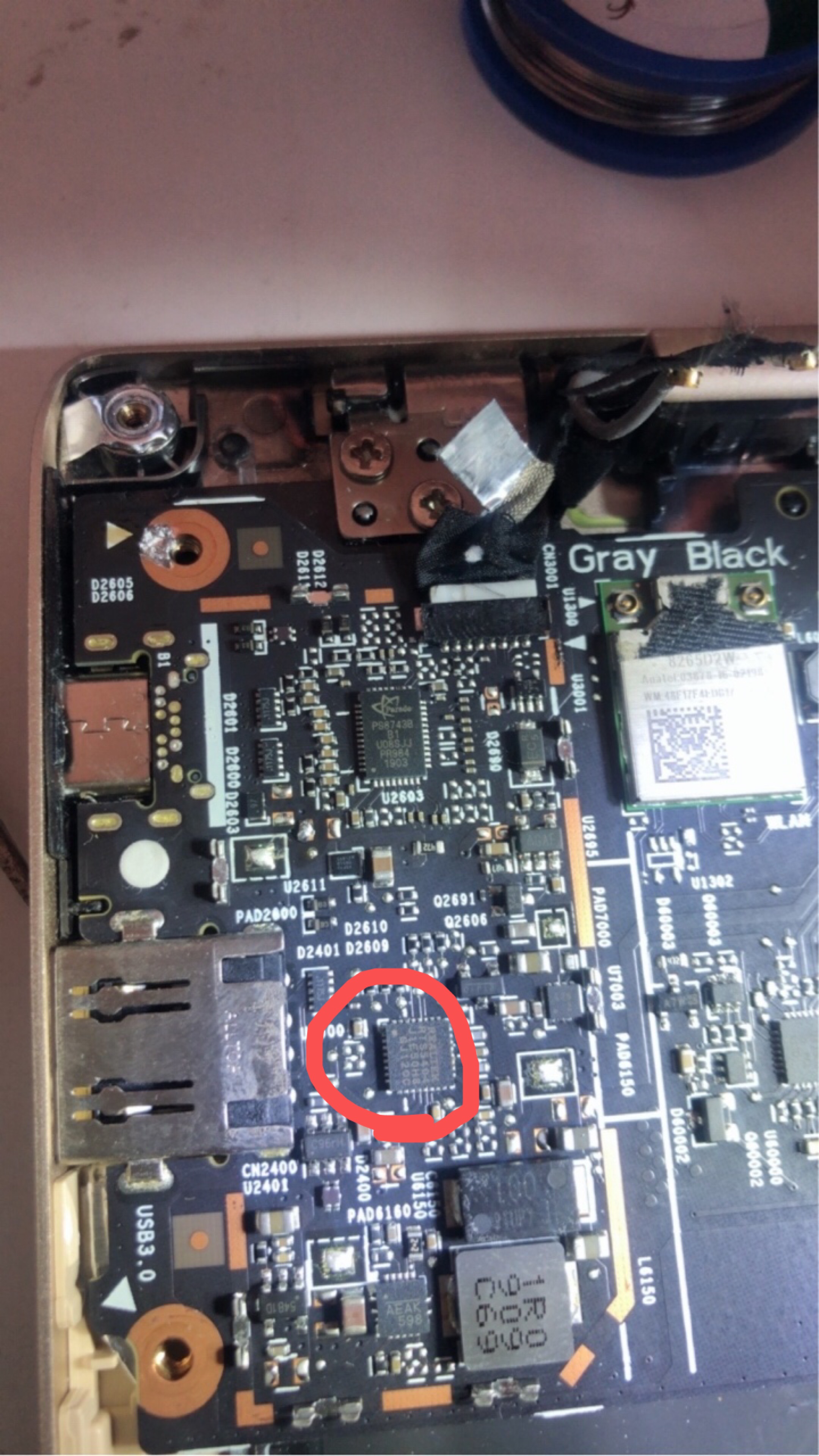 小米air12.5 不充电 测充电口b5脚短路 图纸上显示连接u2600 18脚 测试对地短路。芯片型号是RTS5404 想问一下 这个芯片是宝上定一个新的直接更换 还是需要买料板用拆机的!