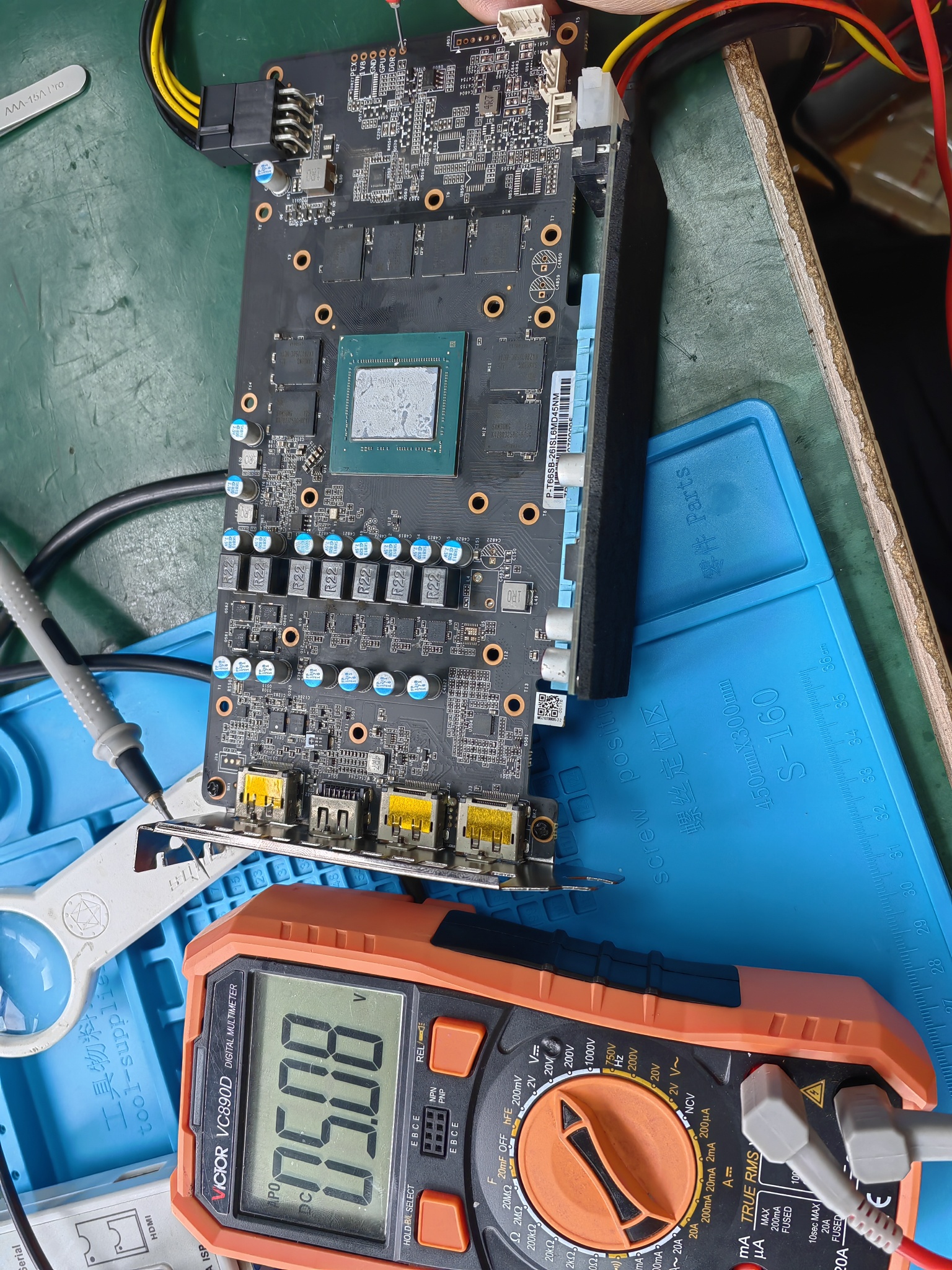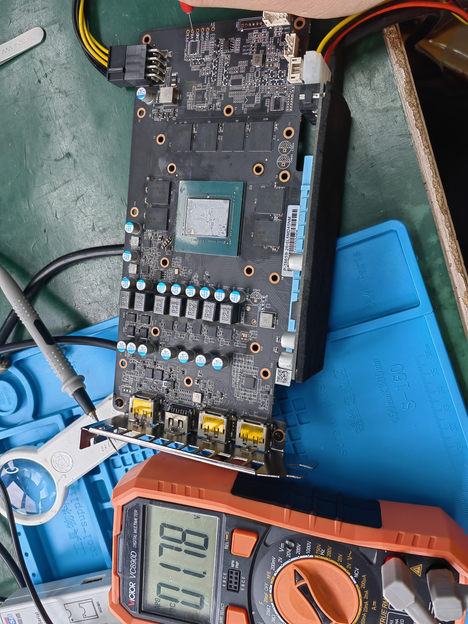 这张卡是有 12v 3.3 5v 1.8 接下来就是核心 然后没有电压 到核心的电压这些原件我都查了 是有的 bios也刷了 就是核心电压不出 核心没有1v就没有 然后1v的主供电都齐全正常