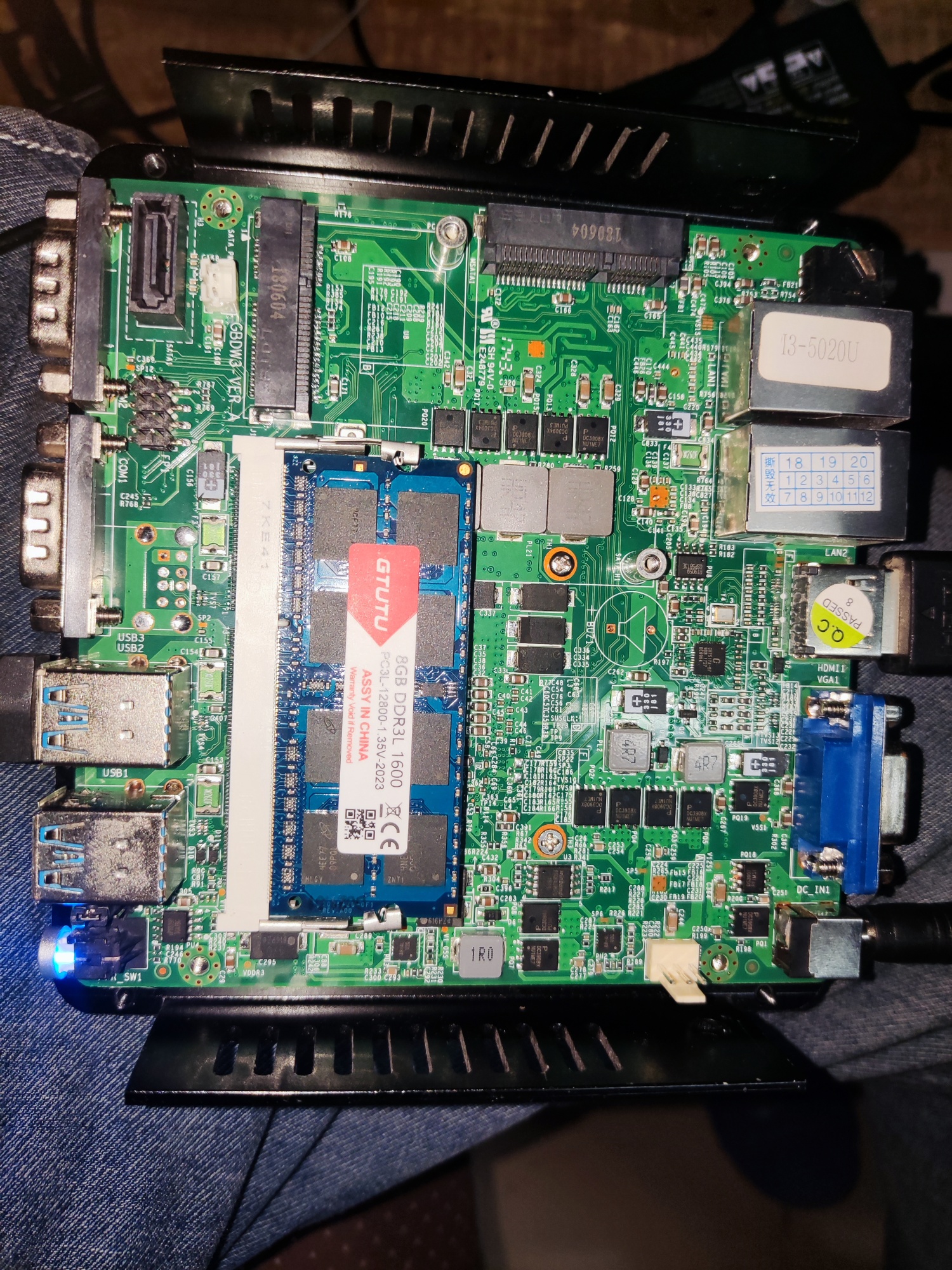 之前在小黄鱼捡了个双网口迷你主机,卖家说通电不开机标价100,看了下没有明显的烧毁痕迹,果断上门拿下,捡回去研究研究,cpu是i3-5020u,电源是dc 12v