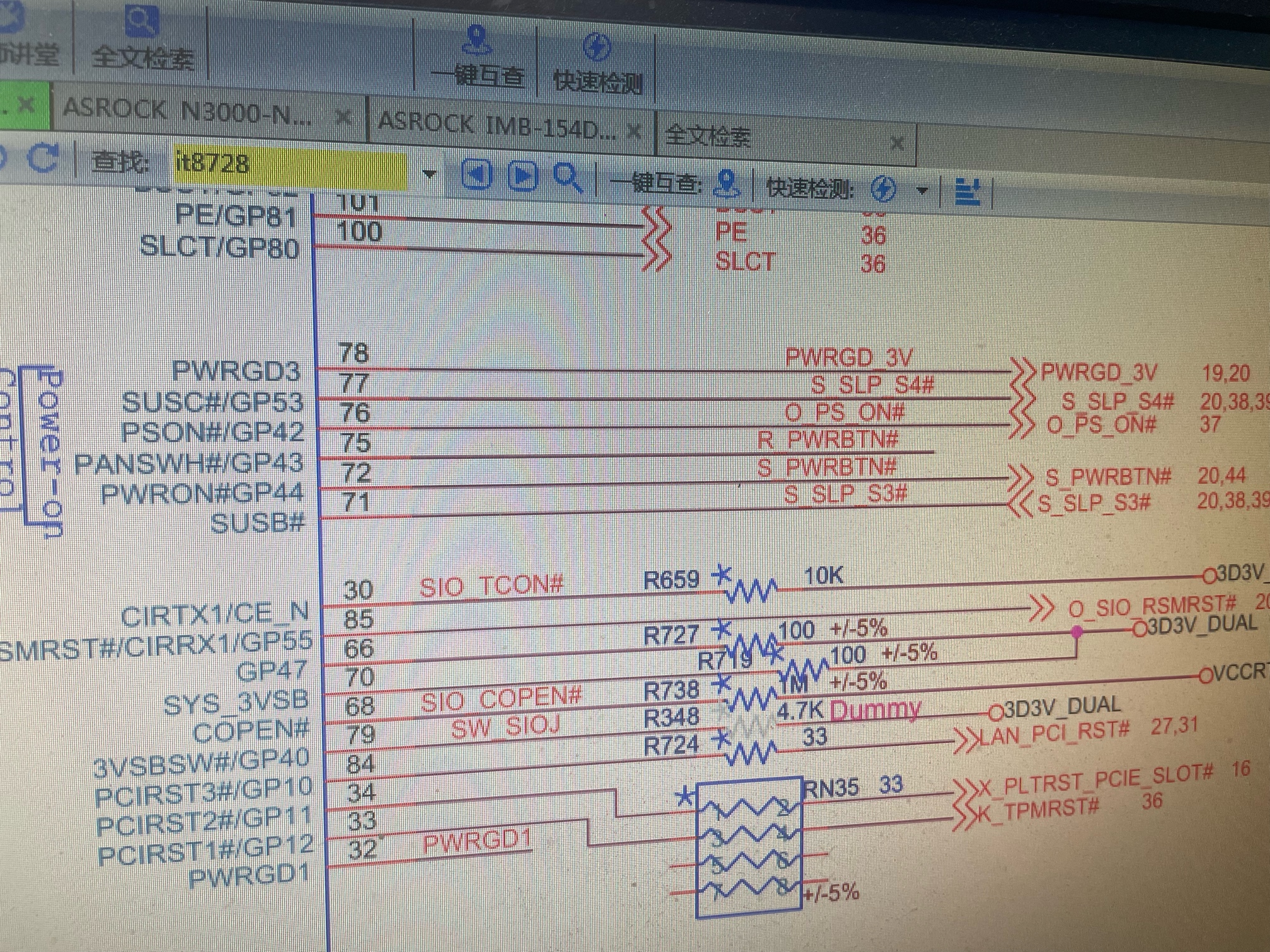 供电都正常 找到了io图纸参考it8728f ,测量ite powerok没有3.3v 按道理供电都正常 io工作条件也正常 io的12v5v检测脚也正常情况下就可以出ite powerok了