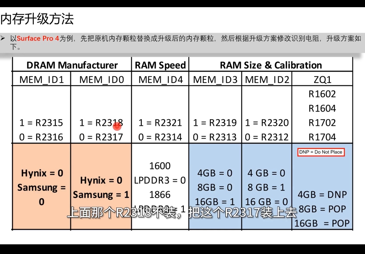 手里有一台surfacepro4,自己升级。别的没问题,4G内存升级16G需要更改识别电阻,不知道怎么改,请教大神指导一下,不胜感激。尽量具体一些,好多大佬当宝不给说