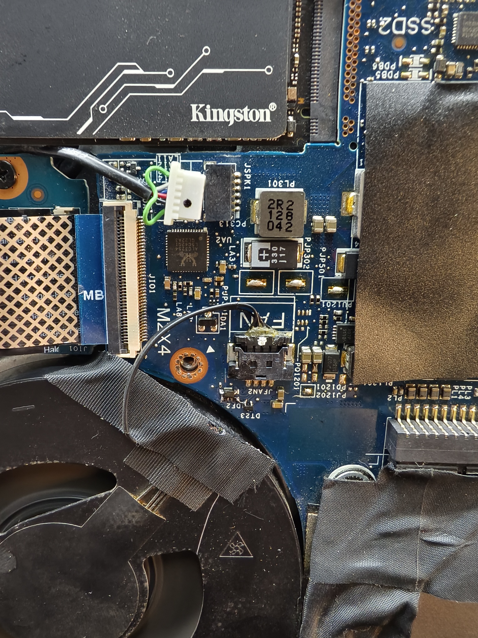 5520风扇不转,客户自己请灰,机器也没带来,说是风扇坏了,我直接定了个风扇,第二天客户带来机器拆机就发现了异常,风扇卡子断了,主板边上掉了几个配件,查图纸掉了一个二极管,两个10k电阻,补件,找不到那个小的电阻,换了两个大的,飞了个线,完美修复。