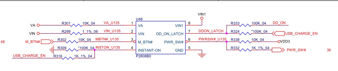 求助海尔雷神G150S插电自动触发,关机后不触发,看着讯维上有这样的帖子,测量P2808B0芯片,1脚有19.2V,2脚18.6V,3脚14.8V,8脚有18.6V,插电自动触发后,4脚产生3.3V电压,7脚1.7V电压,5脚接地,6脚只有0.38V,应该得有3.3V的电压,6脚并联一个1K电阻R332到EC的18脚,按开机键后6脚应该有3.3V,高低高的跳变,现在一直是0.38V。看着图纸VDD3连接一个10K的电阻R338到第6脚,测量电阻一端有3.3V电压,电阻另一端连接芯片的6脚只有0.38V,是不是芯片内部拉低的?买了3个P2808B0芯片,换过都不行,6脚还是不出电压。