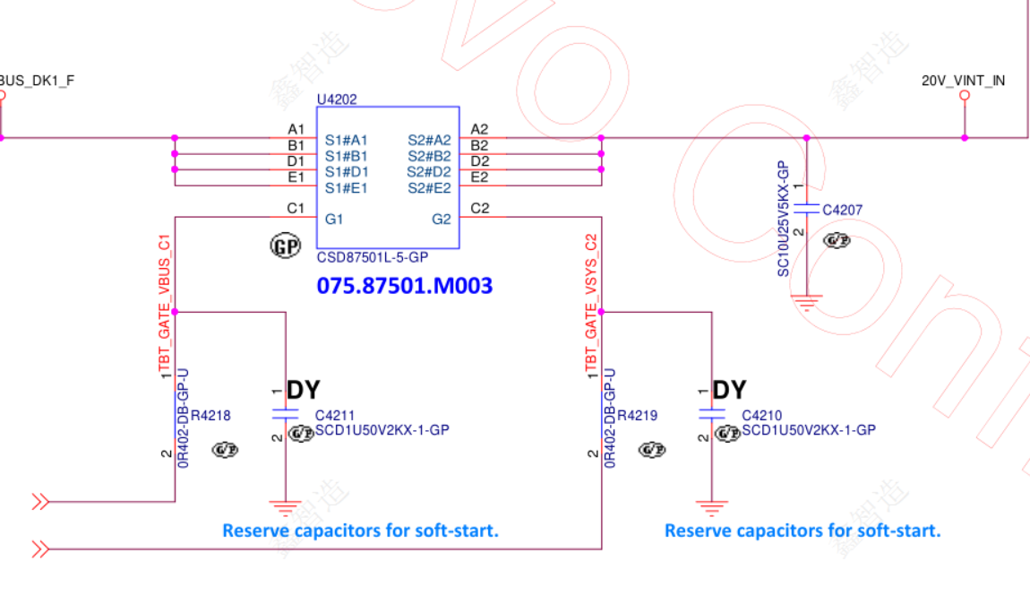机器通病是CSD87501L 这个银色的双n的mos管,这里成组使用,隔离两个c口的供电,
