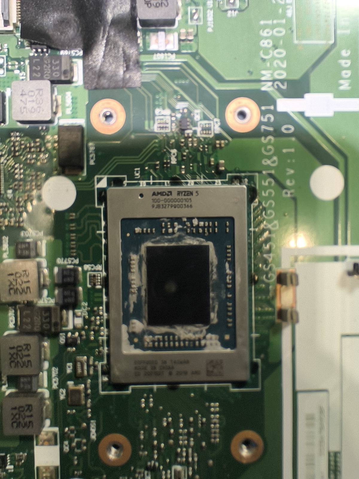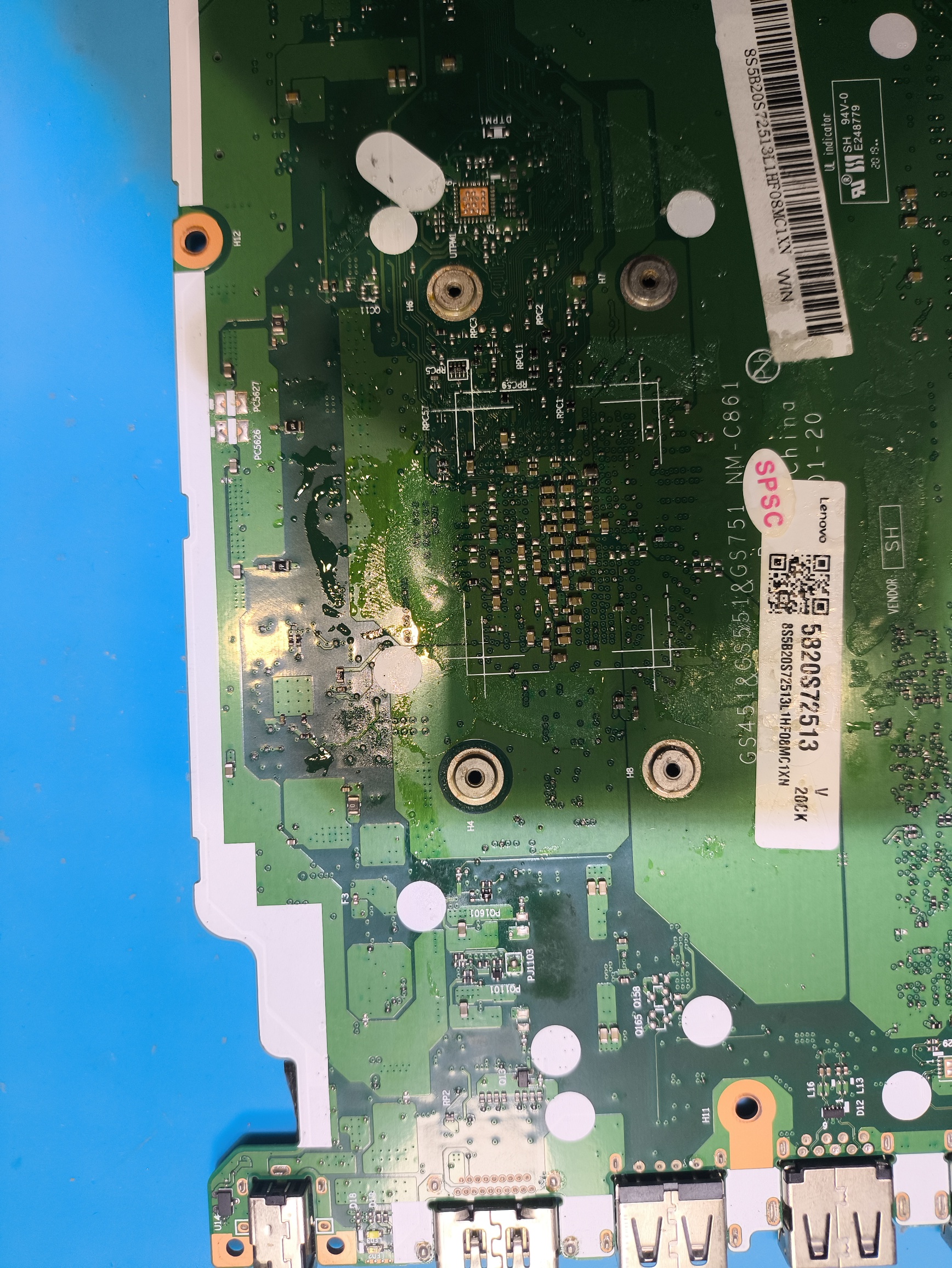 收到一台联想笔记本,屏幕碎了,然后客户不想修了,送给我了,接外接显示屏发现开机会卡log,心想可能是摔过的机器嗯,然后CPU虚焊了,拆开发现,把所有的外侧全部去掉,把硬盘去掉,键盘去掉就裸板,发现还是卡log在网上查了帖子,发现这款机器黑胶CPU虚焊的毛病,多会引起蓝屏死机嗯,自动断电不开机,卡洛g等各种现象,所以我就直接把CPU那个拆下来,重新制作焊接,重新焊接的时候,我把CPU上面放了一块硬币,然后四角都做了归位,焊接肯定是没问题的,才下来的时候也没有掉点,然后万用表打,对地阻值一切正常,其中,CPU供电是002,阻值是三欧姆,我也量了一下,这个CPU上面的电容,最小不会低于002,测量了一下,晶振25M晶振的两个引脚,一个是800多,一个是500多,应该是正常的