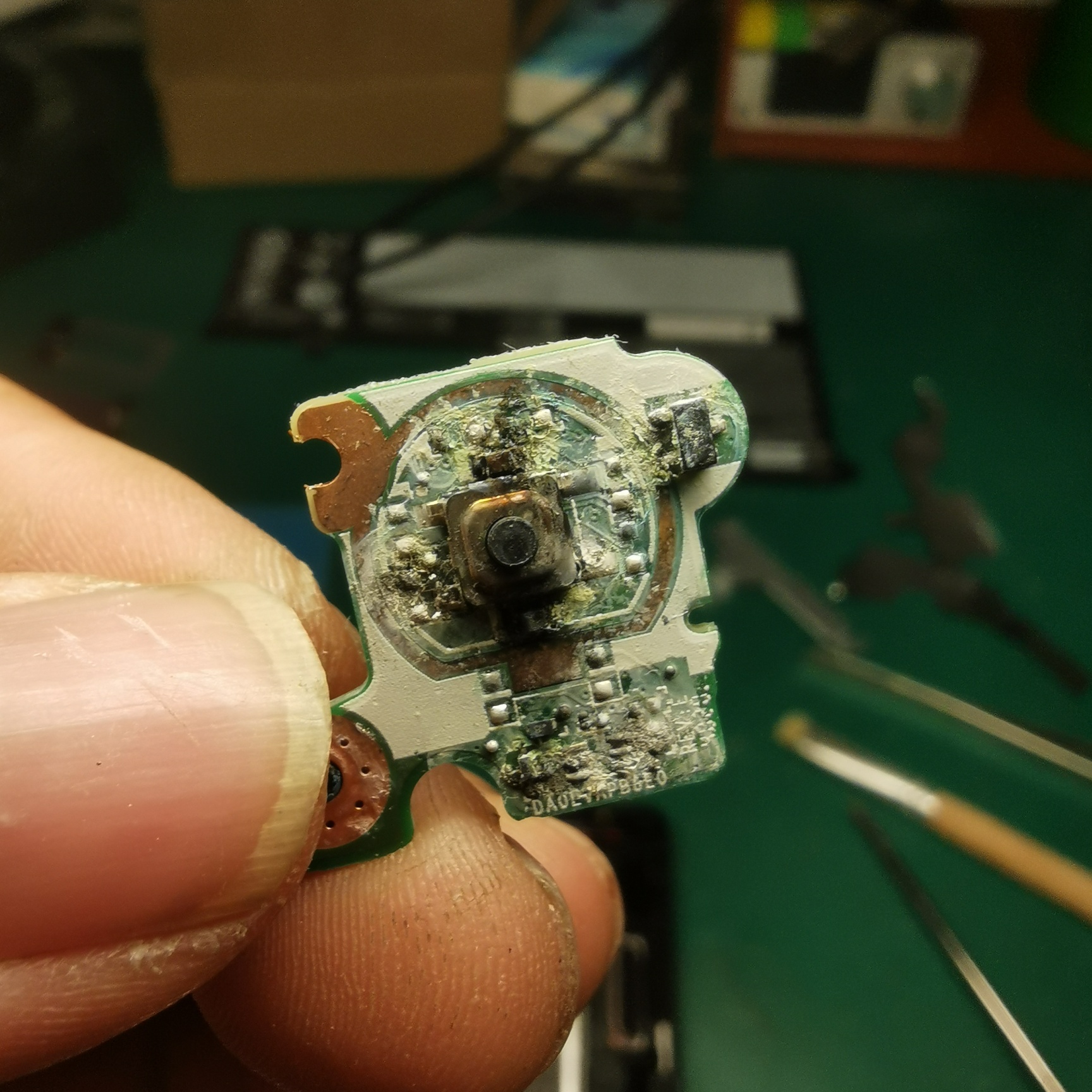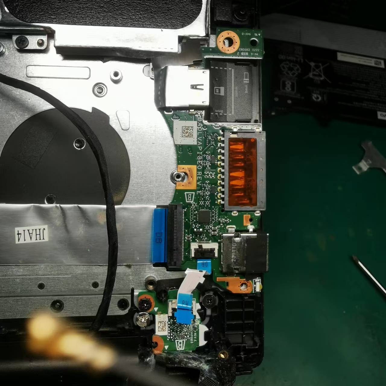 断开USB板,正常了,看来是小板氧化了或者是开关短路了,类似一直按着开关机键不放。接着拆,usb小板很干净,usb小板还连着一个开机键小板,拆开,开机键小板氧化了。看来要换这个小板了。