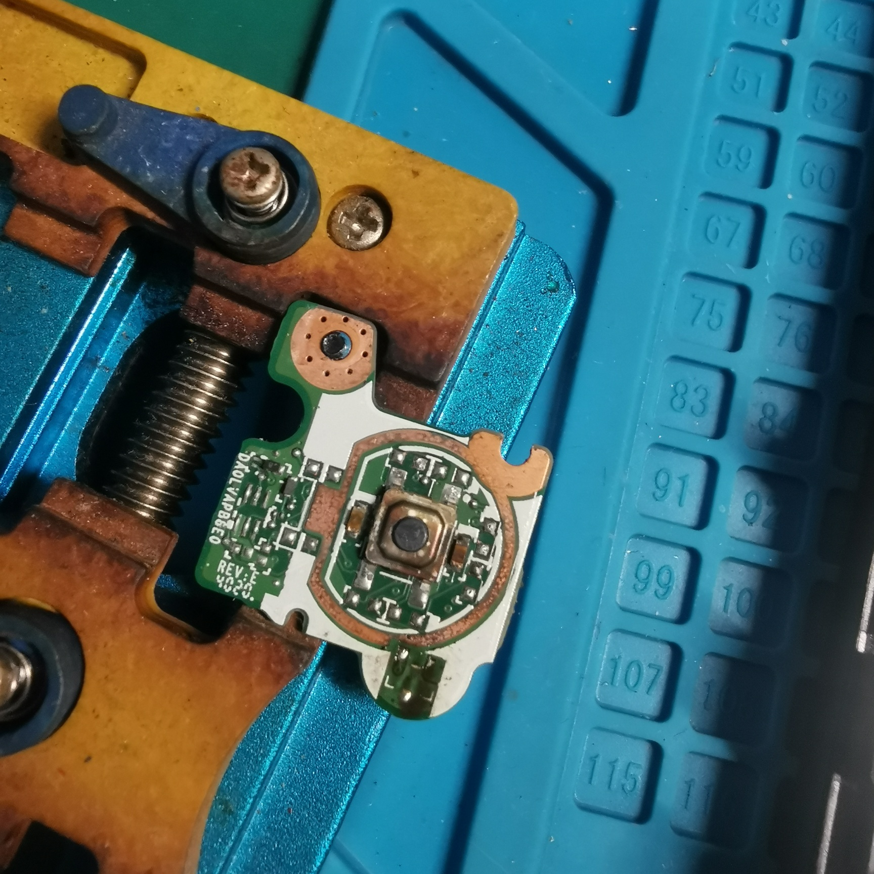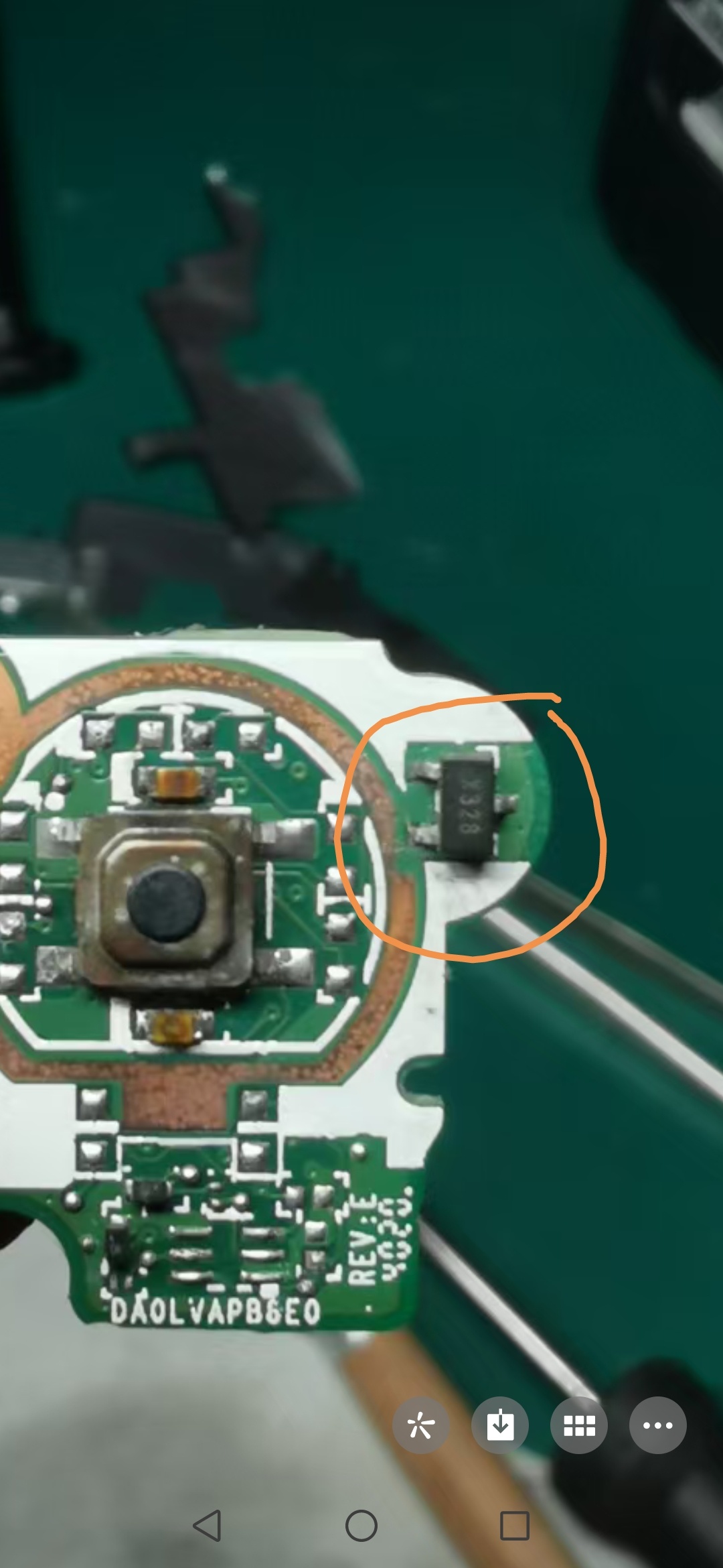 开关键两端300欧,一端接地,一端接三极管,洗板水洗干净,依旧。风枪吹下三极管,刷干净三极管,刷干净三极管下pcb,刮干净三极管的三个引脚,装回三极管,开机键两端无穷大。
