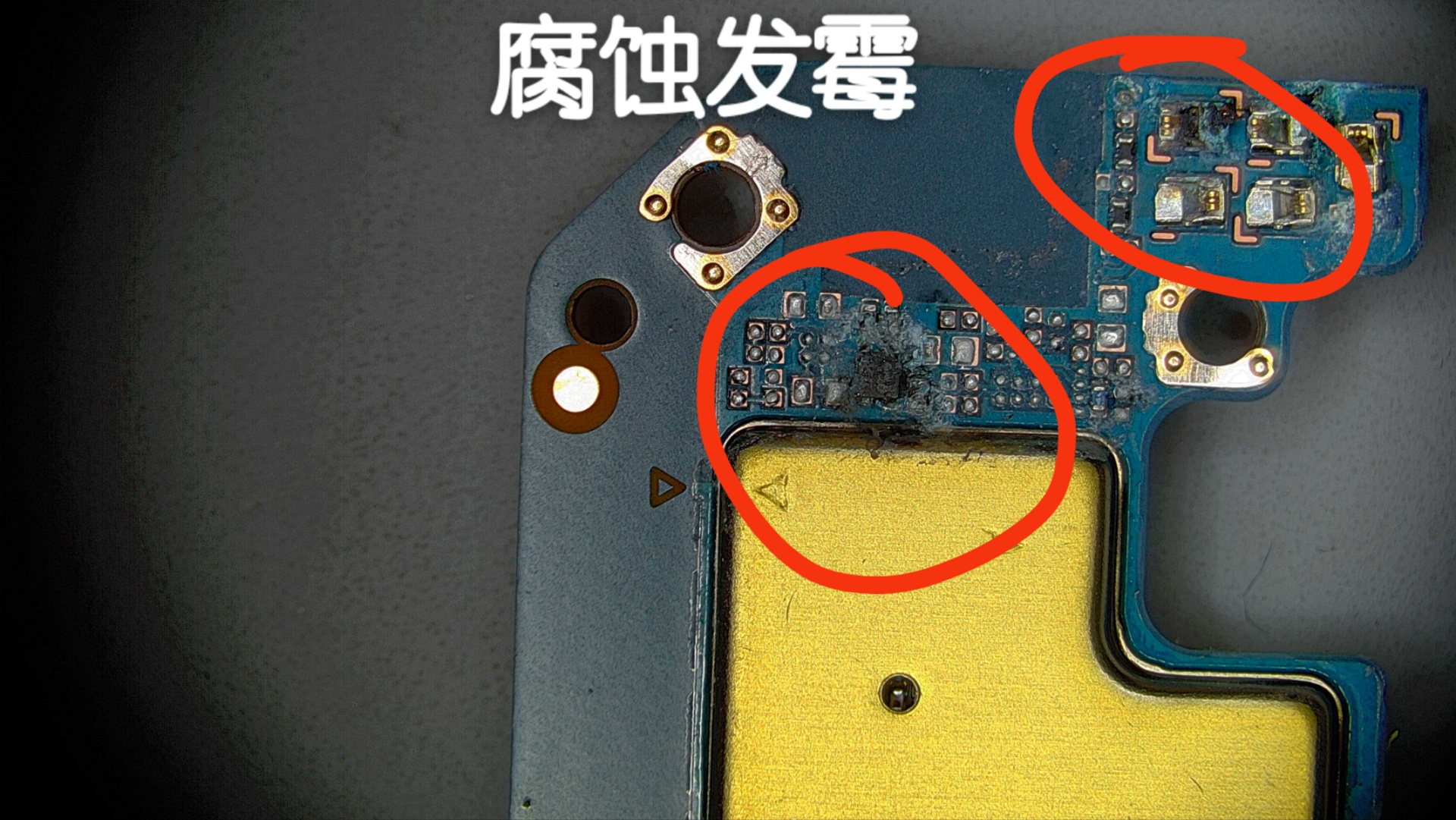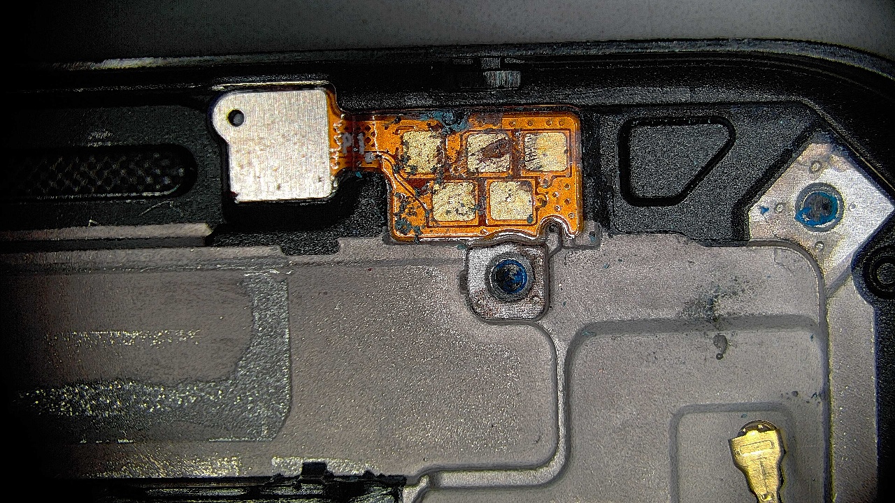 进水腐蚀导致无指纹,接近感应失灵,充电无图标
