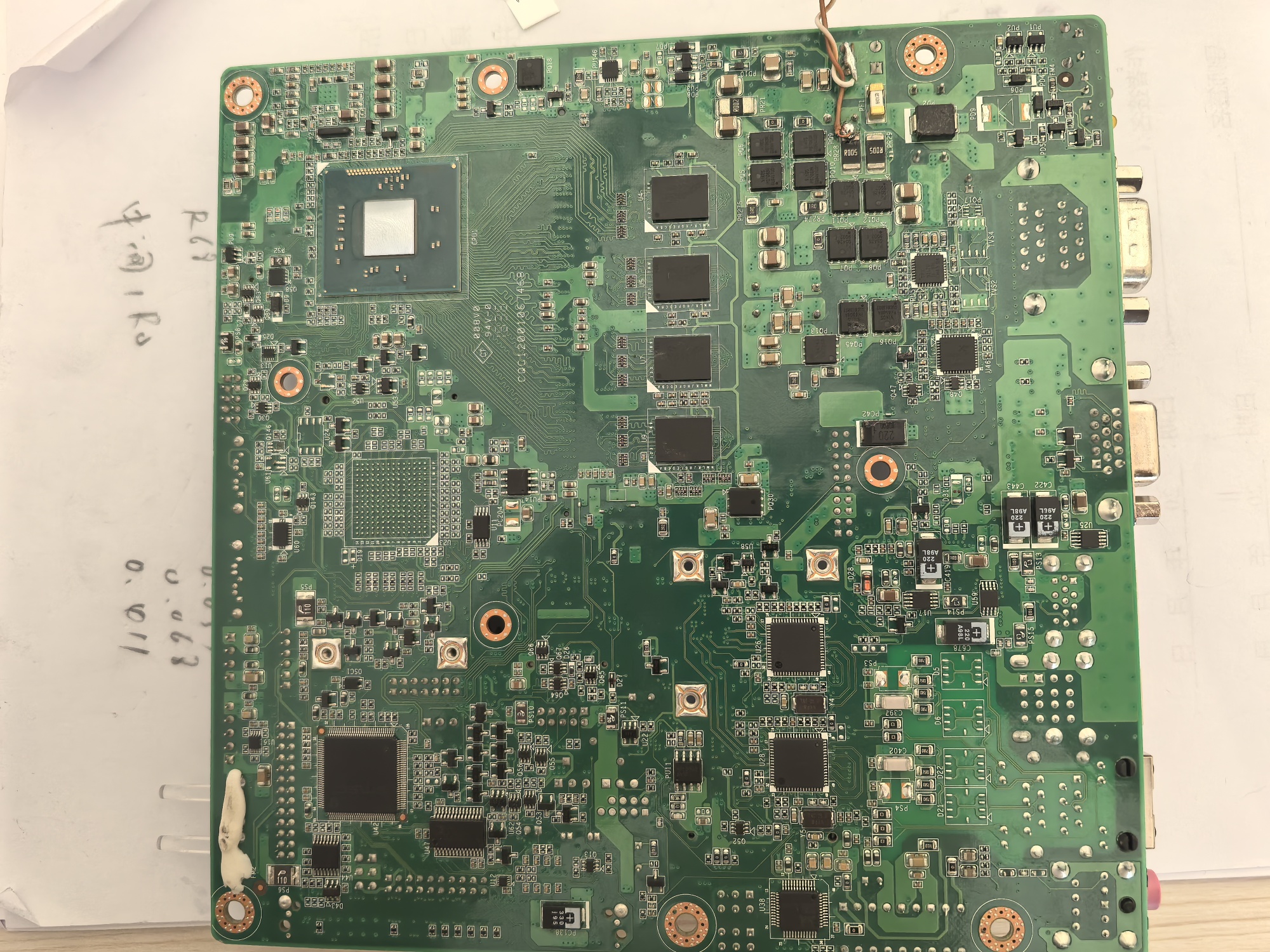 j1900的U,这个板子现在是各路电压均正常,开机显示屏不亮。开机电流固定在0.29A 。在mini pcie接口上测试复位信号低电平。测量cpu25兆晶振两脚电压都为0 ,怀疑CPU没有获得pmc_core_pwrok信号。由于没有点位图,不知道如何测量。