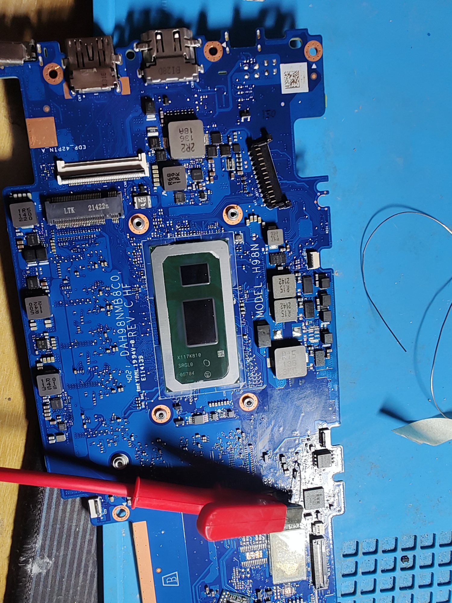 今天接到一个笔记本一修,插电5伏不升压,感觉这次应该是能赚到,电流0.3a,2瓦左右,以为是小短路拆开机器,主板型号h98n,经过测量一个LDO稳压器ic发热,从料板上找到一个同样位置的,不同型号的换上电流到了0.5a!还是5v,感觉有点不妙,测量vout阻值5k,正常值应该在15以上,这个应该是通南桥的,马上接上2v烧鸡试一下,南桥发热 gg,荣耀的和华为的好难,换cpu成本高,先给顾客报一下价格吧