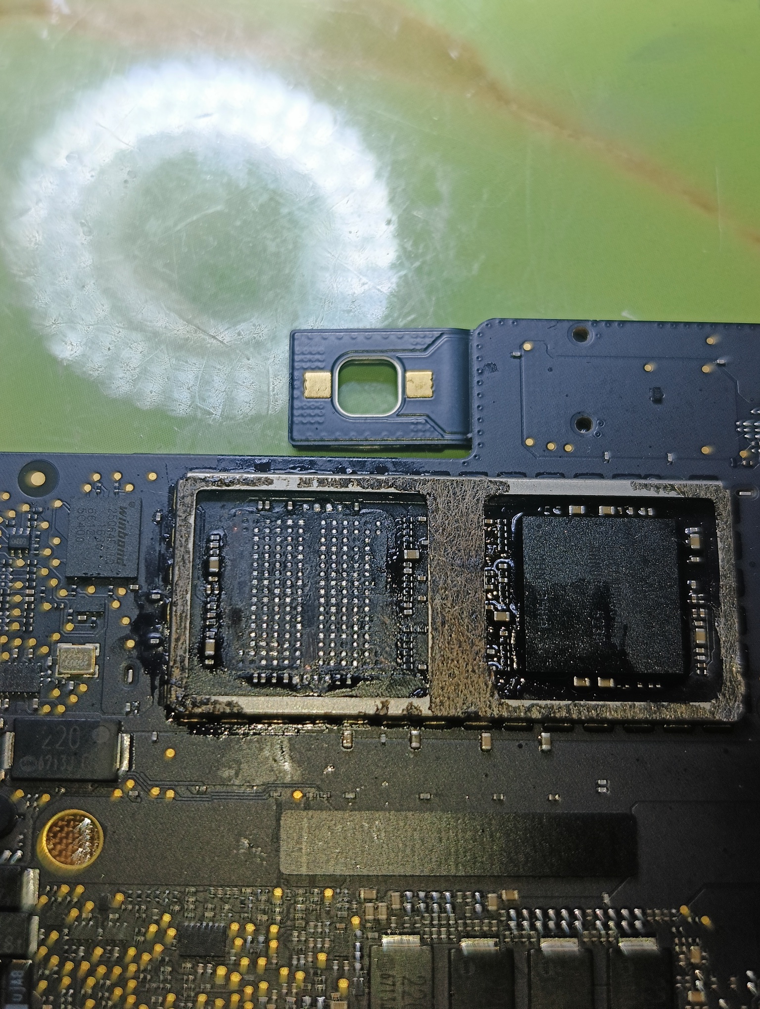 细节决定成败,你的黑胶都没有处理干净,把底脚的黑胶处理干净,再把芯片四周的黑胶也处理干净,你这个问题,大多数是边角的黑胶没处理干净,顶住了芯片,焊接的时候无法下沉做归位
