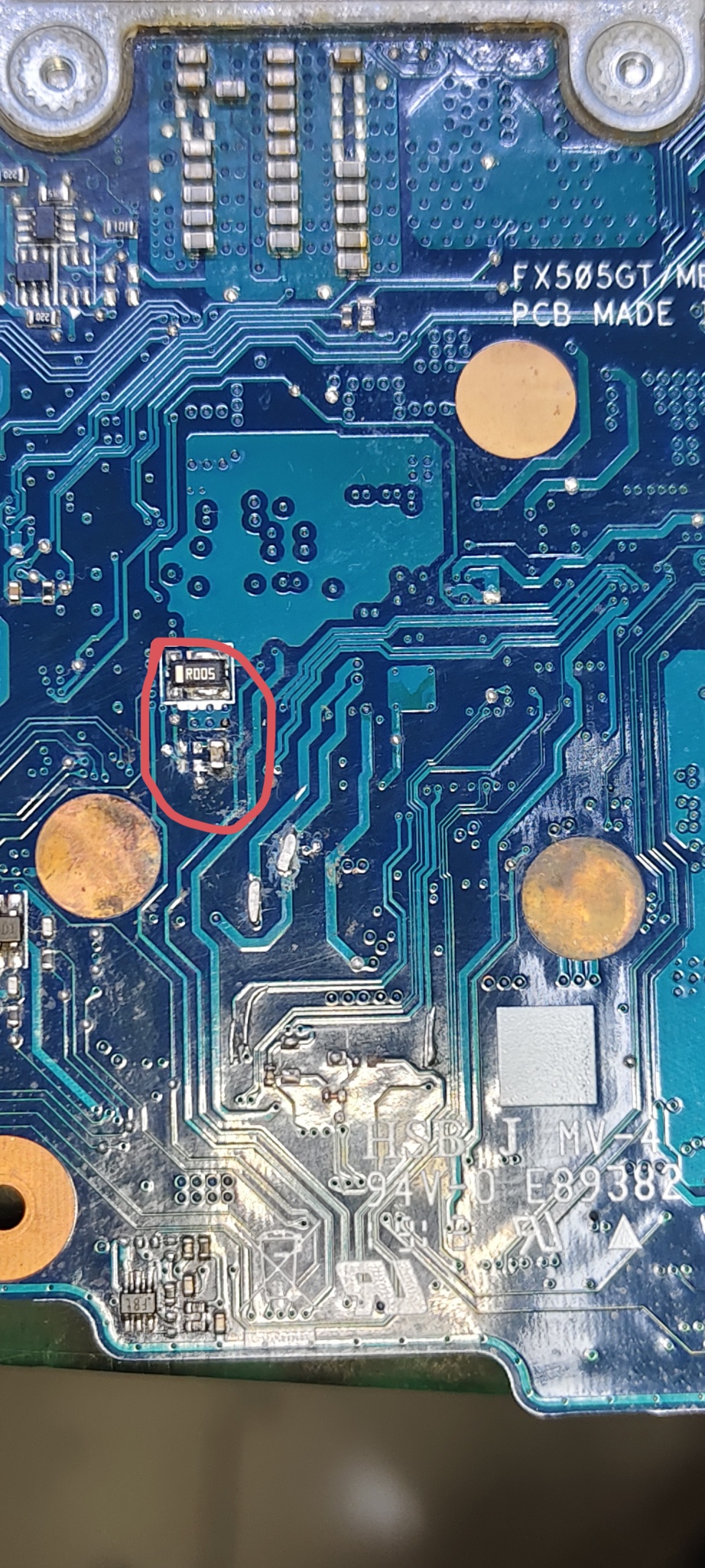 华硕飞行堡垒FX95G,板号FX505GT/MB REV:2.0A,进水了清理完发现掉元件了,找不到图纸和点位求助各位大神谁知道如图位置是啥元件?或者哪位大神有图纸和点位,拜谢!拜谢!