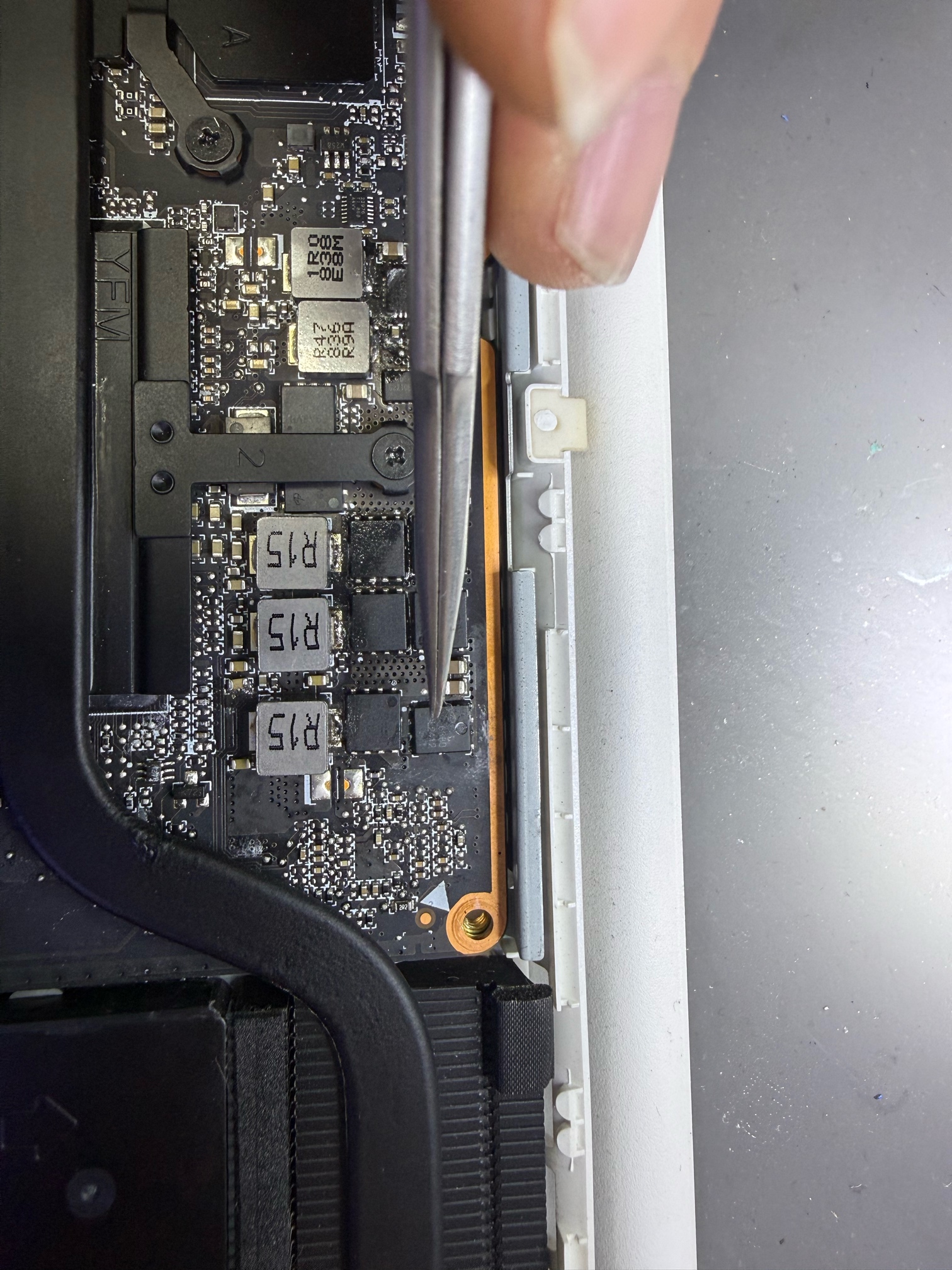 ,机器到我手上是上电没有待机电流,按开机键没反应,插充电器没反应,指示灯不亮,主板很靓没有维修过,后拆机检查发现公共点没电压,阻值只有12,几乎接地了,公共点加电烧机发现集显供电的一颗6380MOS管发烫,更换一颗同型号的MOS管后,就可以正常上电触发了,测量各路供电均正常,就是一直定在500毫安左右,已经更换过内存,BIOS也刷了几个,就是故障依旧!维修到这里就无解了,大神们帮忙指导一下,感谢感谢,不想给顾客退机的机会
